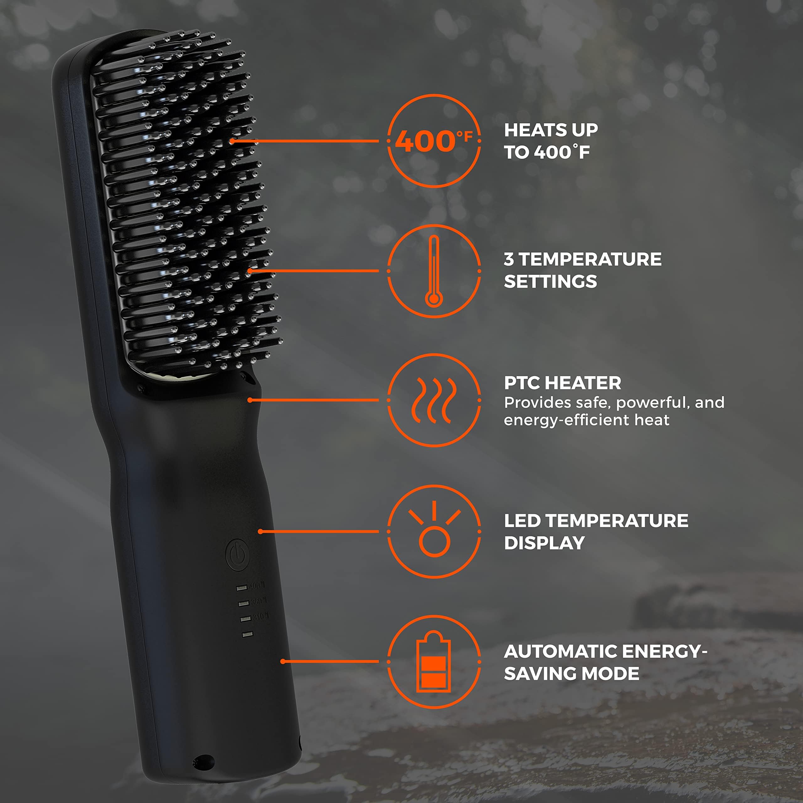 - Q: How does the heated beard straightener work? A: The heated beard straightener heats up to 400 degrees Fahrenheit and features three temperature settings, allowing you to achieve silky, shiny, and frizz-free facial hair. It is designed to reduce coarse texture and help straighten your beard effectively.