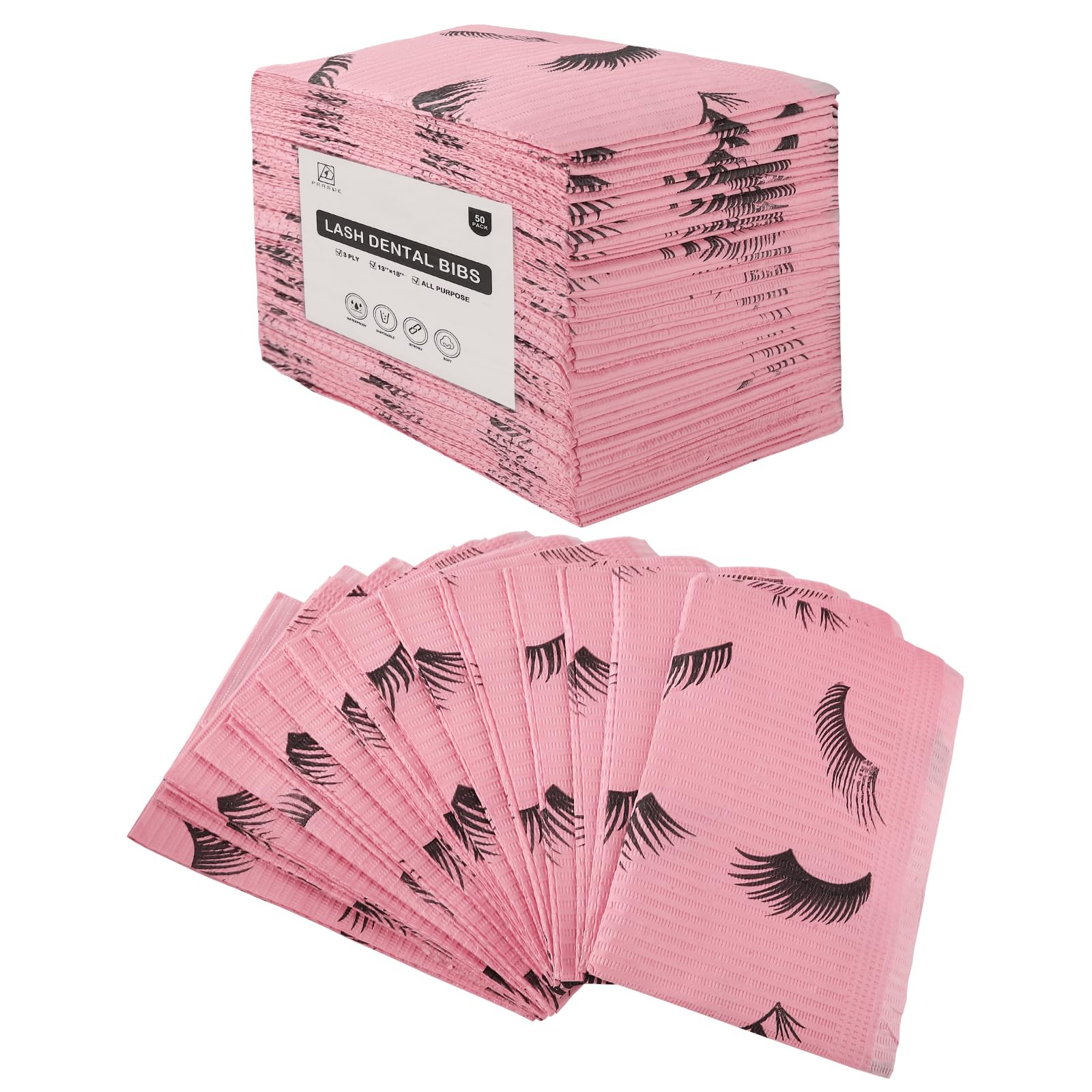 Prasne Lashing Dental Bibs Disposable Pack Of 50, Lash Pillow Cover Of Lash Supplies, Pink 3-Ply Paper Poly Waterproof Towels, 1