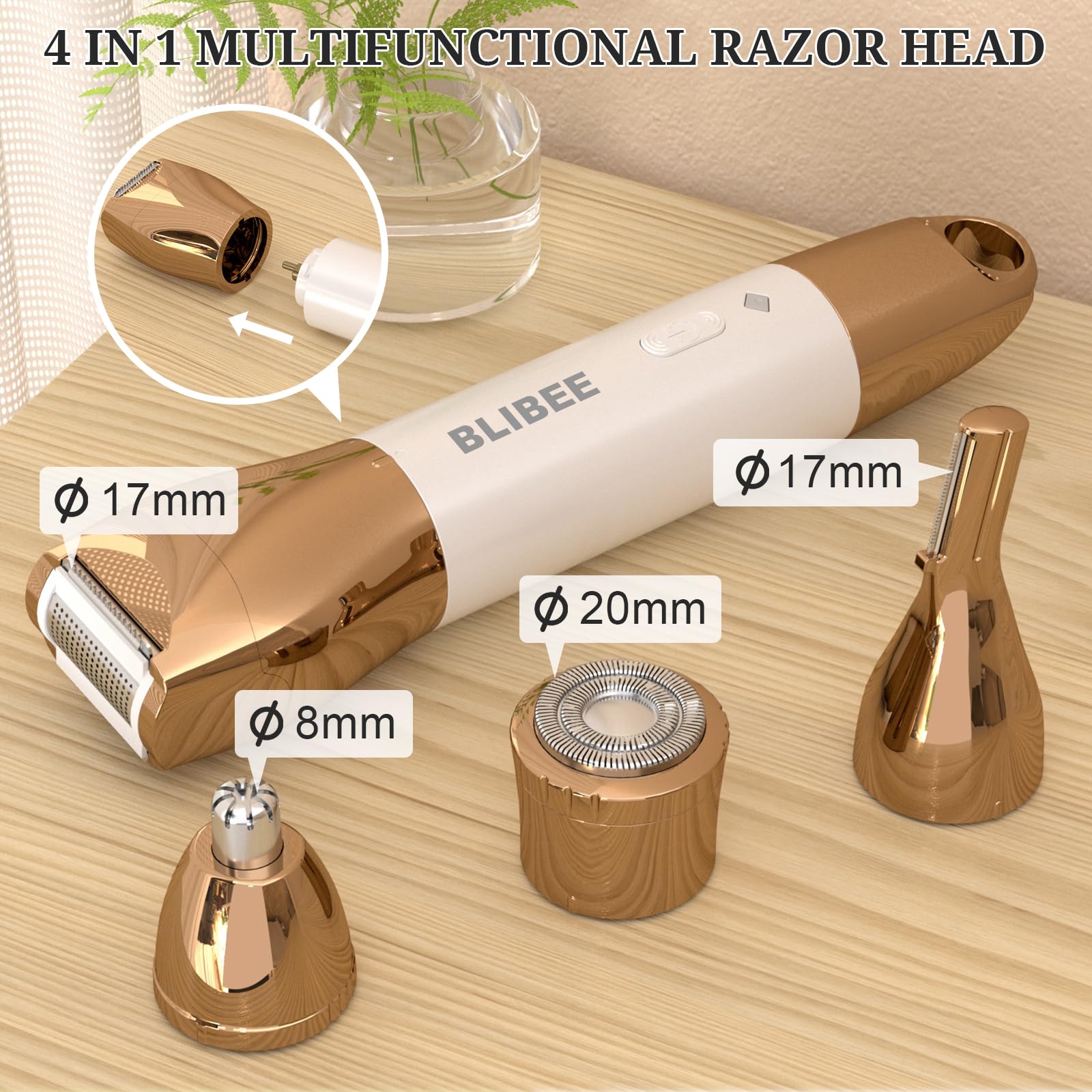- Q: What attachments are included with the trimmer? A: The BLIBEE Bikini Trimmer set includes four interchangeable heads for various hair types: one for bikini trimming, one for nose hair, one for eyebrows, and an electric hair clipper. It also comes with three guard attachments for different hair lengths (1-3mm).