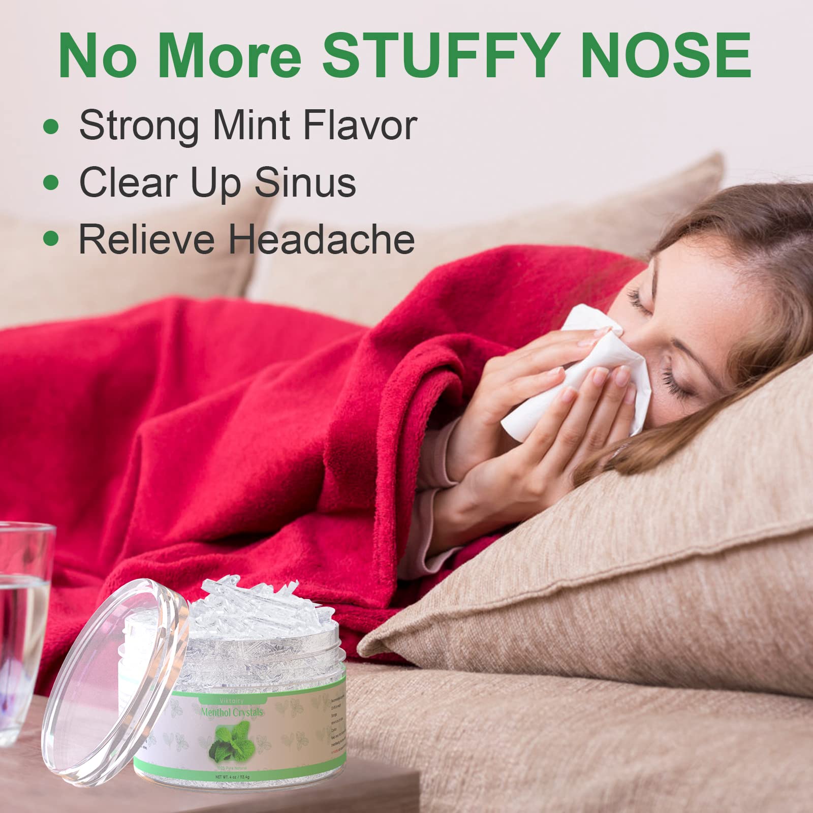 • Q: What precautions should I take when using menthol crystals? A: When using Viktairy Menthol Crystals, keep them away from children and pets, and avoid using them if pregnant or breastfeeding without consulting a medical professional. Ensure proper storage to prevent melting during warmer months, as they have a low melting point.