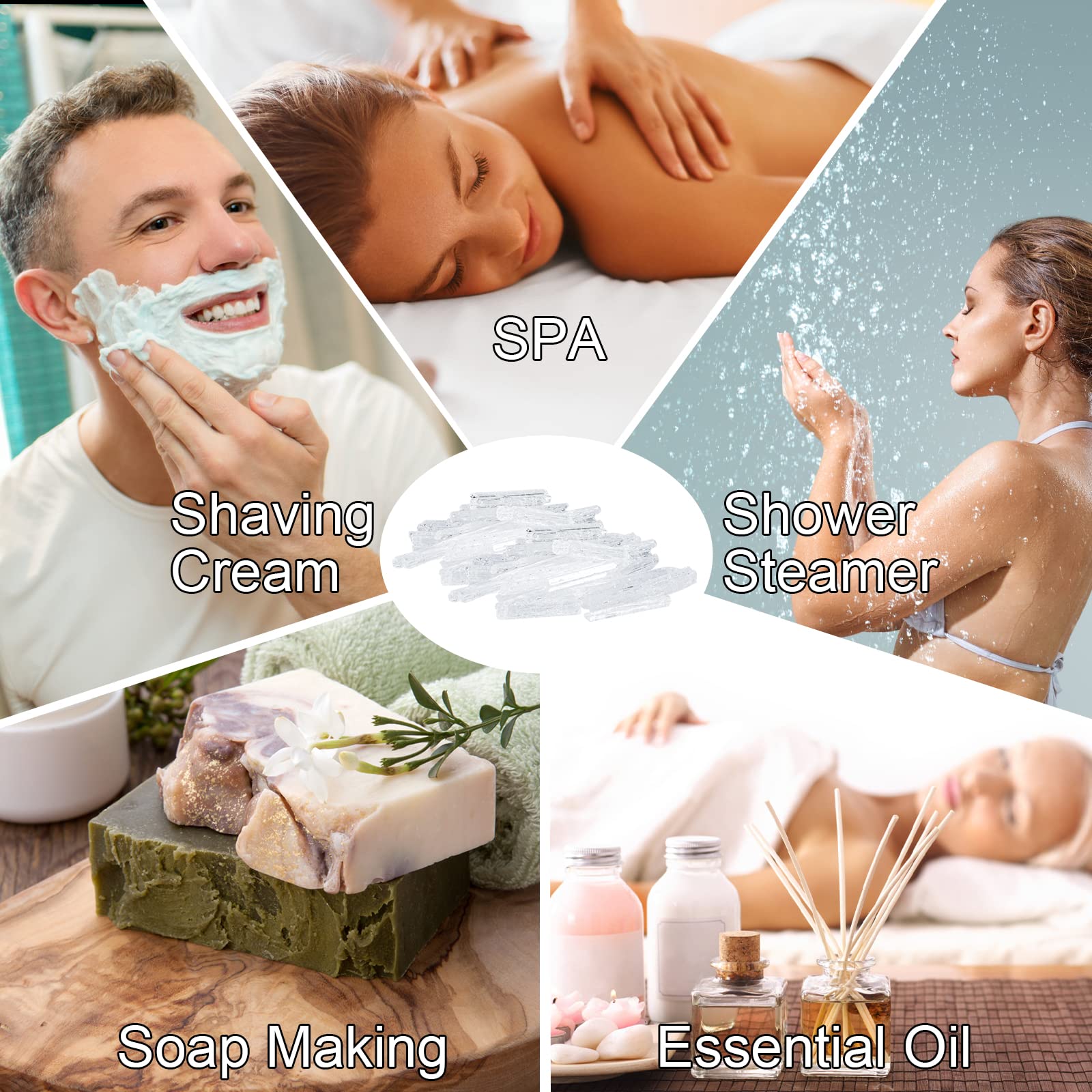 • Q: What are Viktairy Menthol Crystals used for? A: Viktairy Menthol Crystals are versatile and can be used for various applications, including making shower steamers, bath oils, massage lotions, soaps, creams, and candles. They provide a strong minty aroma and a cooling sensation, making them ideal for relaxation in spas and steam rooms.