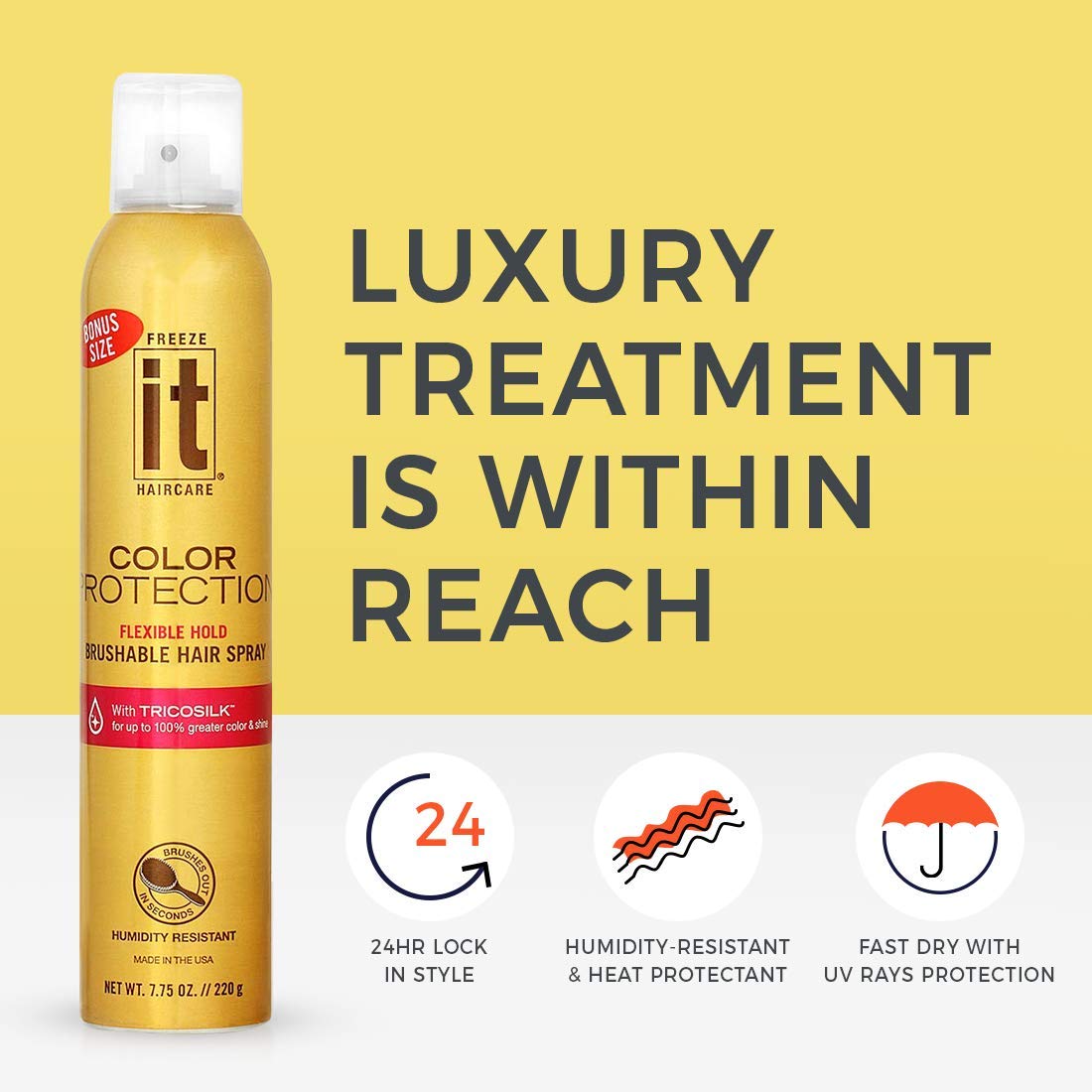 - Q: How does It Haircare Freeze Hair Spray protect hair color? A: This hair spray is formulated with optical brighteners that enhance shine and reflectivity, which helps to protect hair color from fading. It is designed to maintain the vibrancy of your hair color even in various weather conditions.