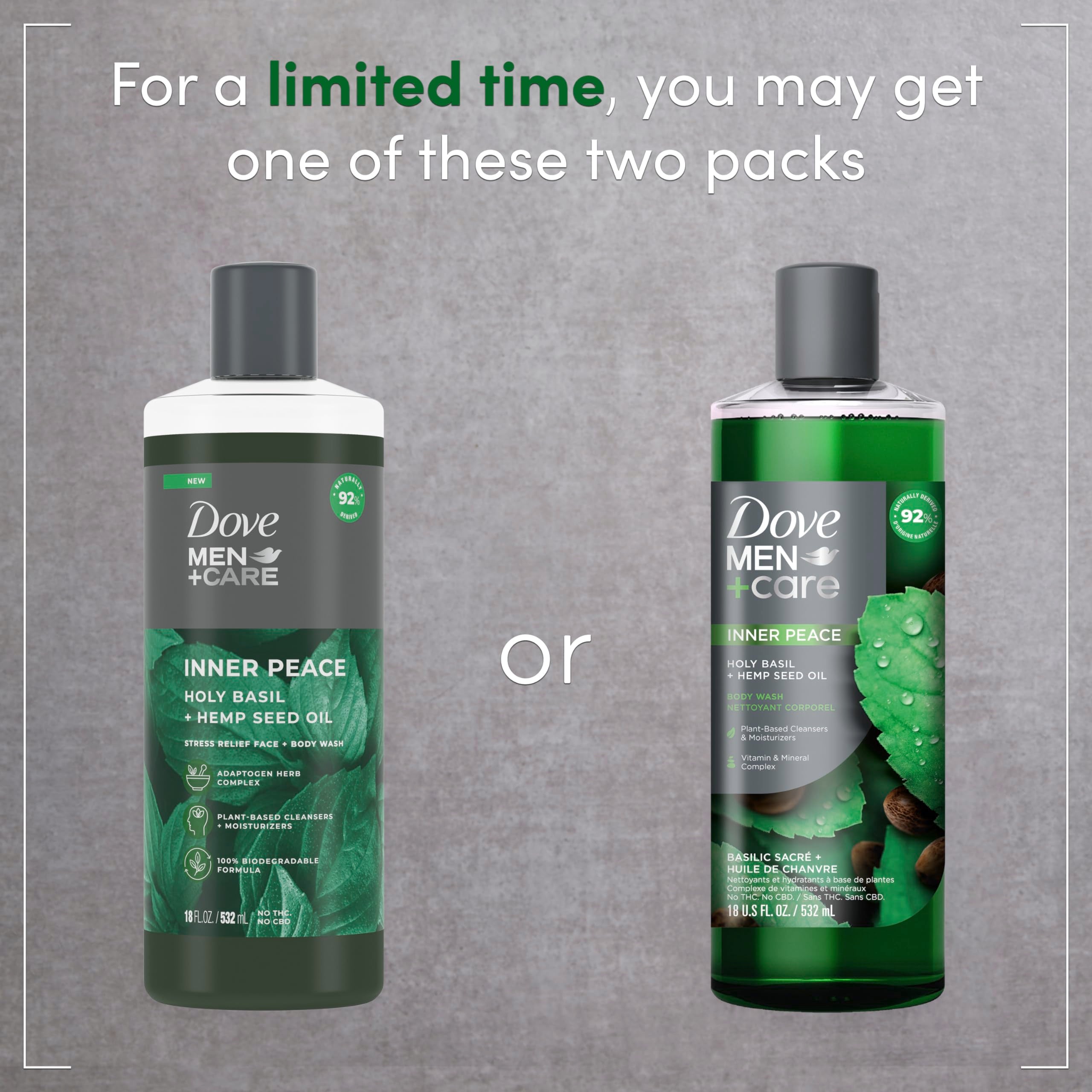 Dove Men+Care Body Wash Holy Basil + Hemp Seed Oil 4 Count To Rebuild Skin In The Shower With Plant-Based Cleansers And Moisturi