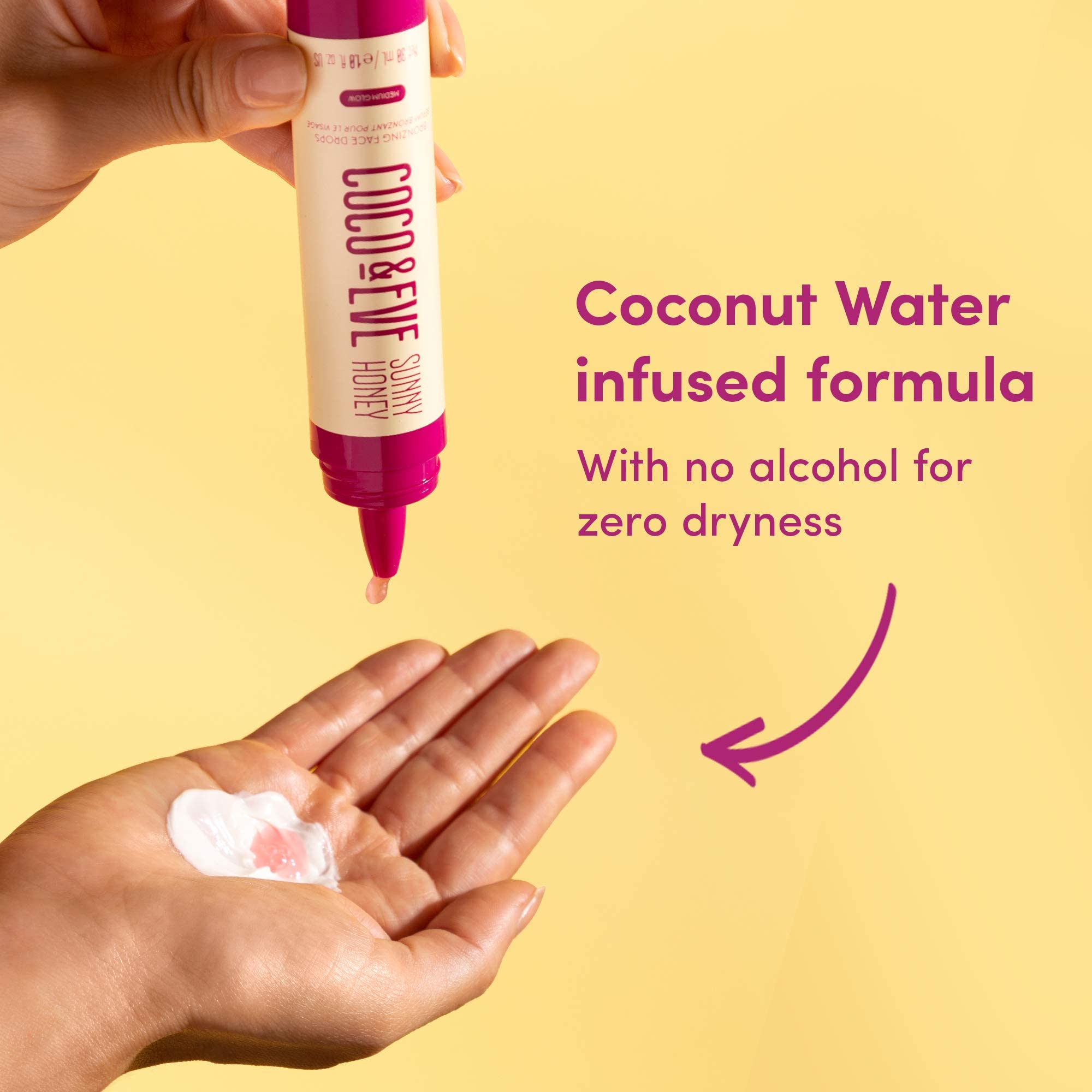 • Q: How do I use Coco & Eve Sunny Honey Bronzing Face Drops for best results? A: For optimal results, simply add 2-3 drops of the face tanner to your daily moisturizer. Mix well and apply evenly to your face for a gradual, natural tan that enhances your skin's glow.