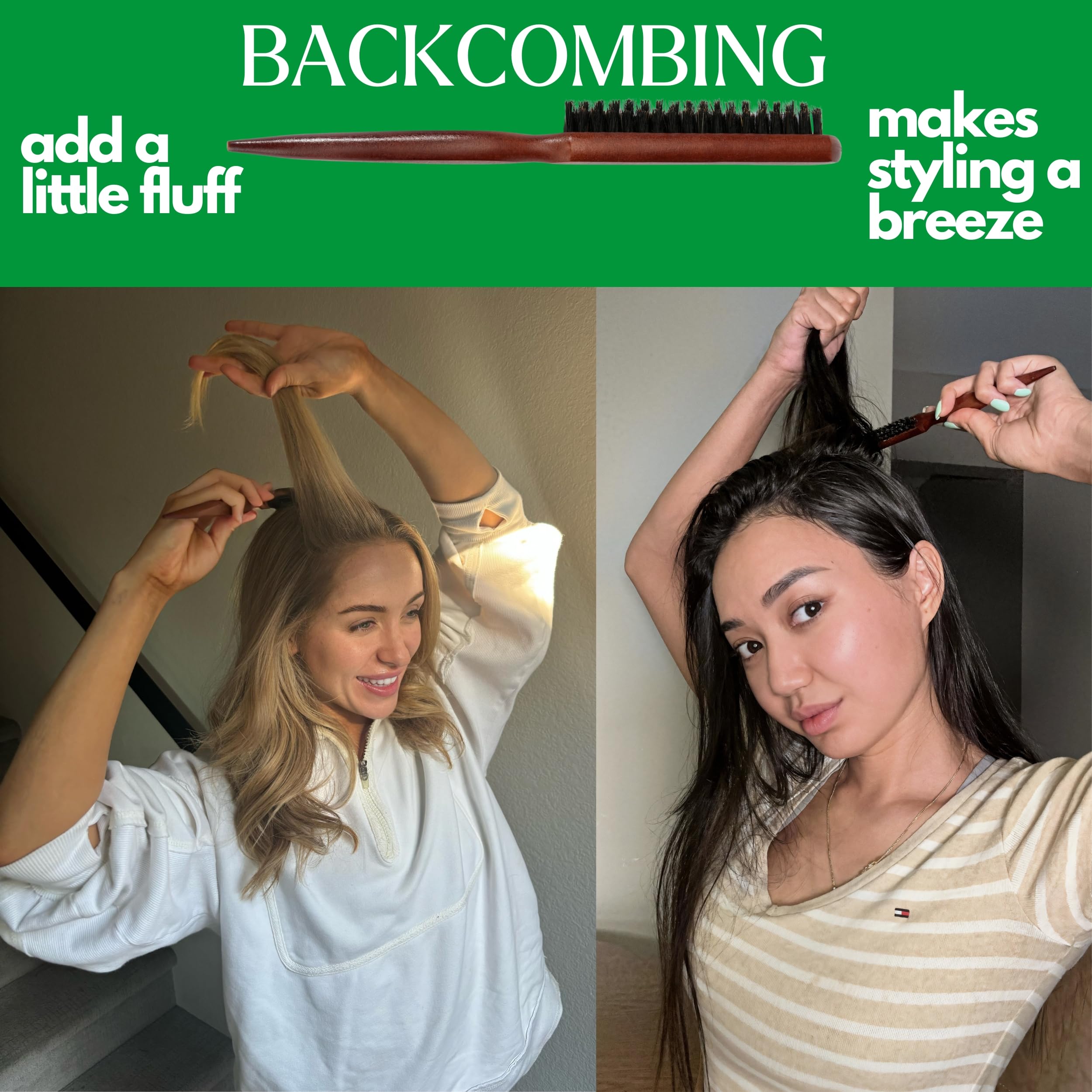 Grannaturals Teasing Boar Bristle Hair Brush For Women - Teasing Comb With Rat Tail Pick For Hair Sectioning Used For Edge Contr