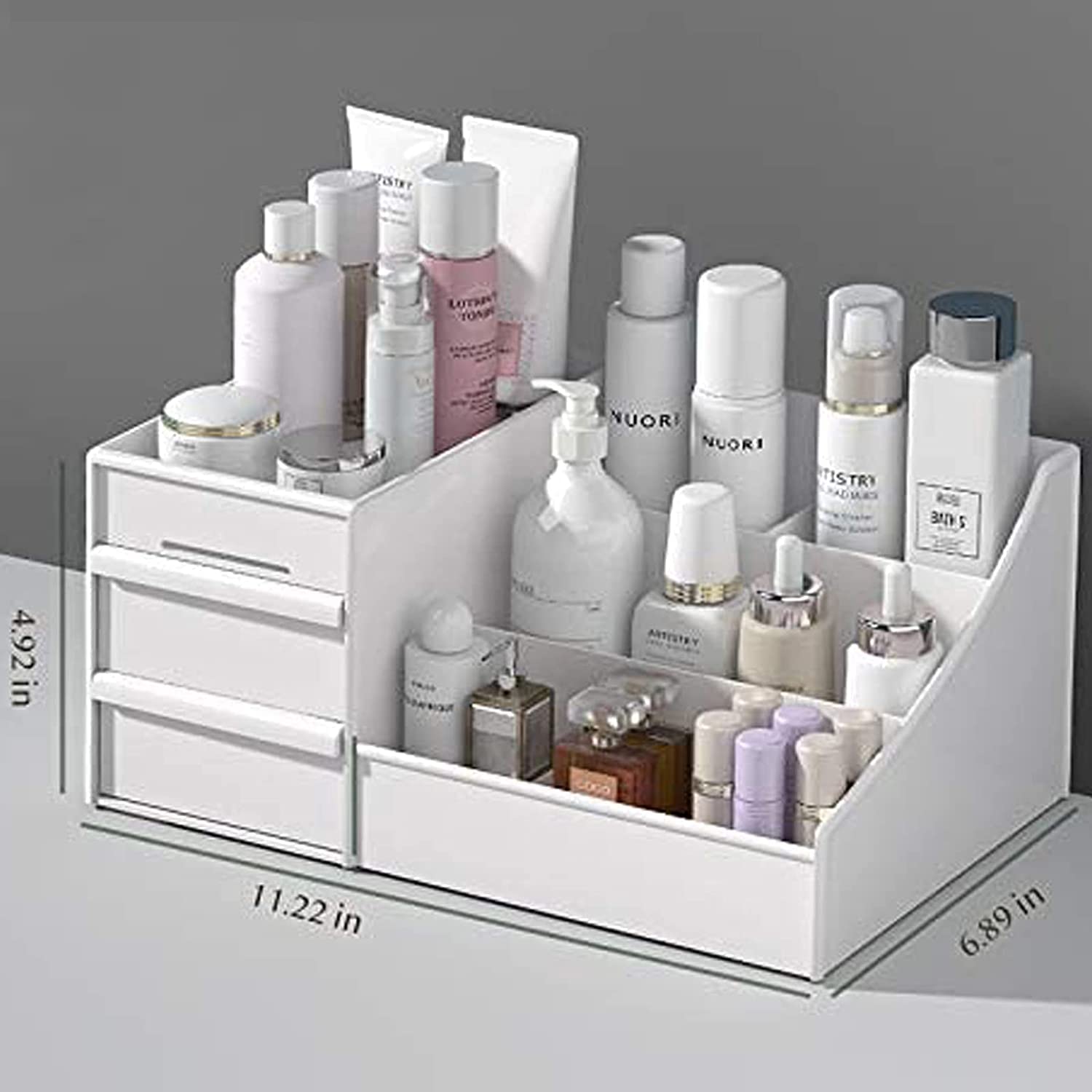 Skin Care Organizer,Makeup Desk Organizer With Drawers,Countertop Organizer For Cosmetics,Vanity Brush With Holder For Lipstick,