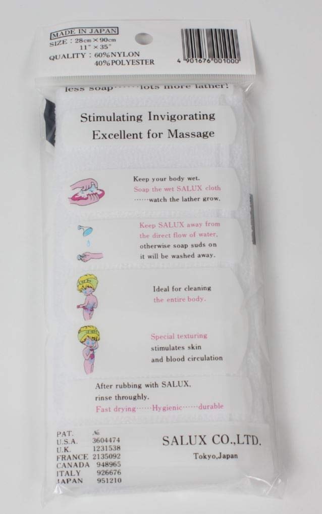 - Q: What makes the Salux Nylon wash cloth different from regular washcloths? A: The Salux Nylon wash cloth features a patented design that provides better exfoliation and hygiene compared to regular washcloths. Its extra-long length allows for easier reach and a more thorough cleaning experience.