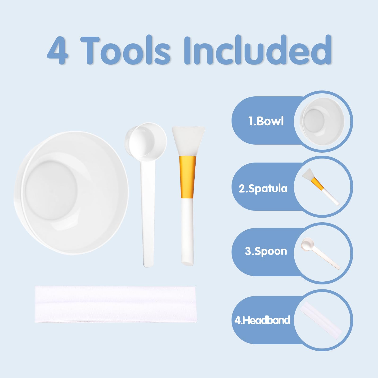 Complete Face Mask Mixing Tool Kit: Comes with a face mask applicator brush, measuring spoon, mixing bowl, and elastic headband for a professional jelly facial mask experience at home.