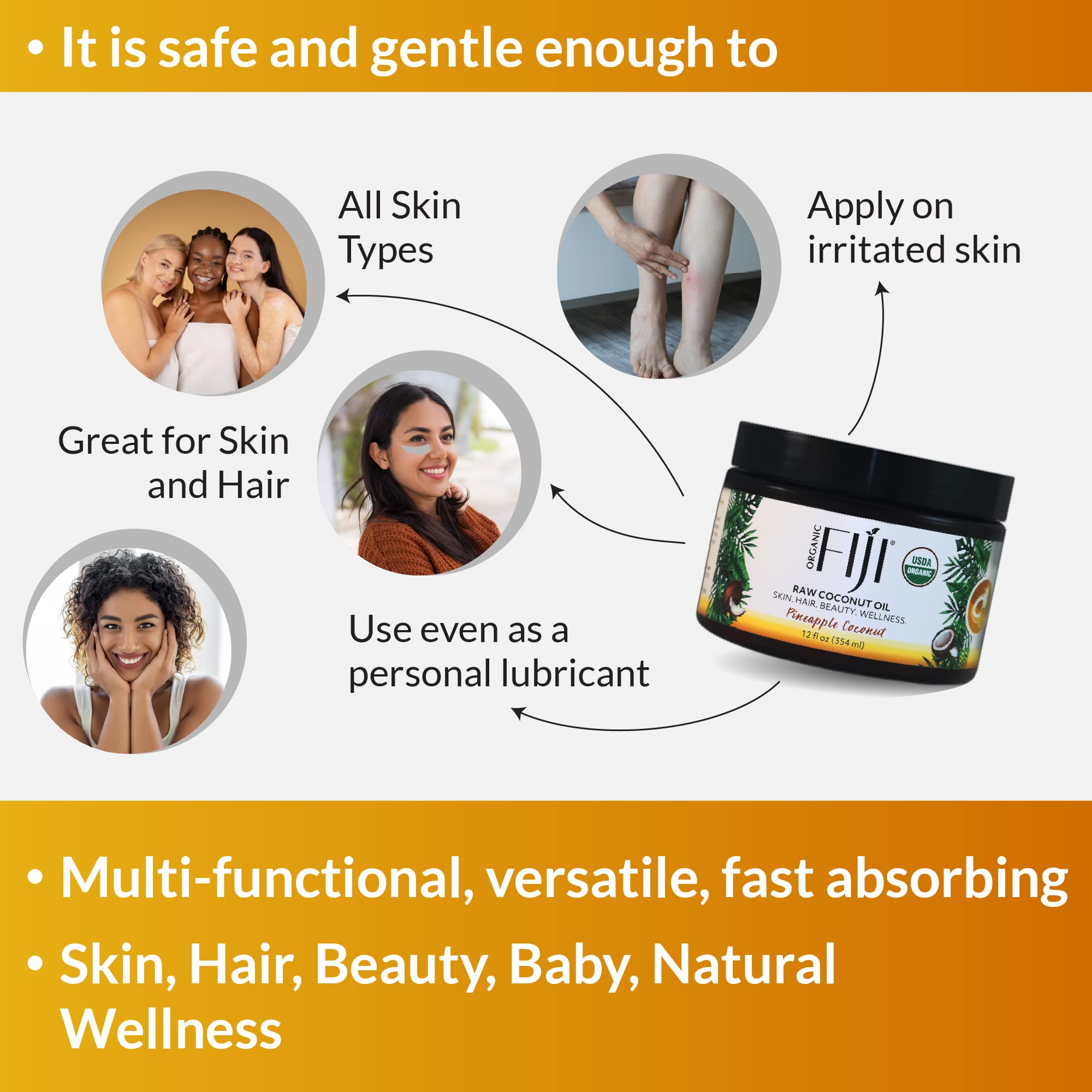 Organic Fiji Raw Cold Pressed Coconut Oil For Hair, Skin, Face & Body | Relaxing Massage Oil | Pineapple Coconut,12 Oz For Women