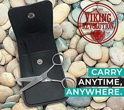 Viking Revolution - Beard And Mustache Scissors W/Comb And Synthetic Leather Case Professional Sharp Surgical Grade Steel For Tr