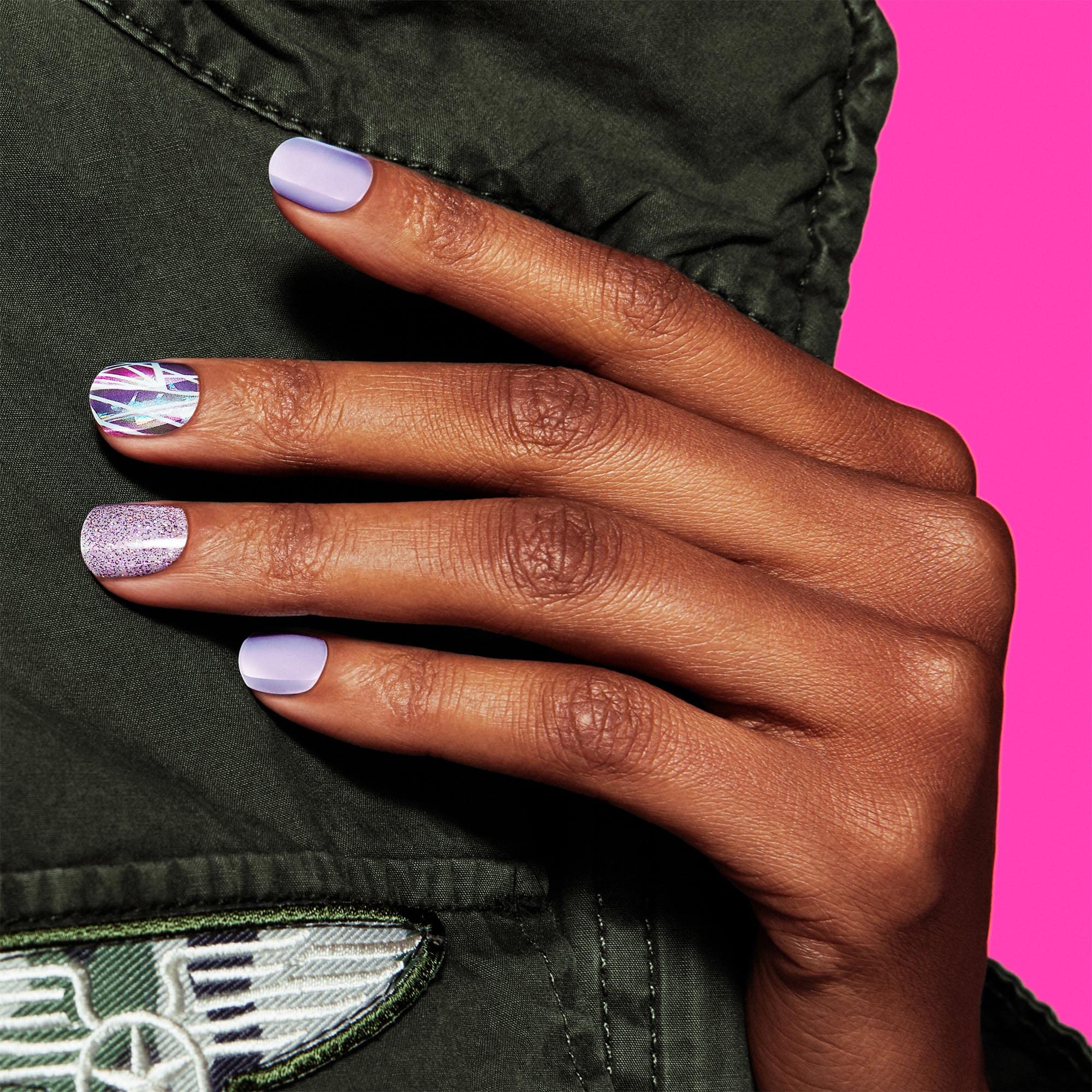 - Q: Do these nail strips come in different designs or colors? A: The Dashing Diva Gloss Nail Strips are available in various designs and colors, including the Gleam Queen option, which features soft lilac gel strips with iridescent and glitter accents.