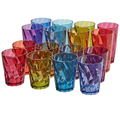 Us Acrylic Optix 16-Piece Plastic Stackable Tumblers In Jewel Tone Colors 8 Each: 14-Ounce Rocks And 20-Ounce Water Drinking Cup