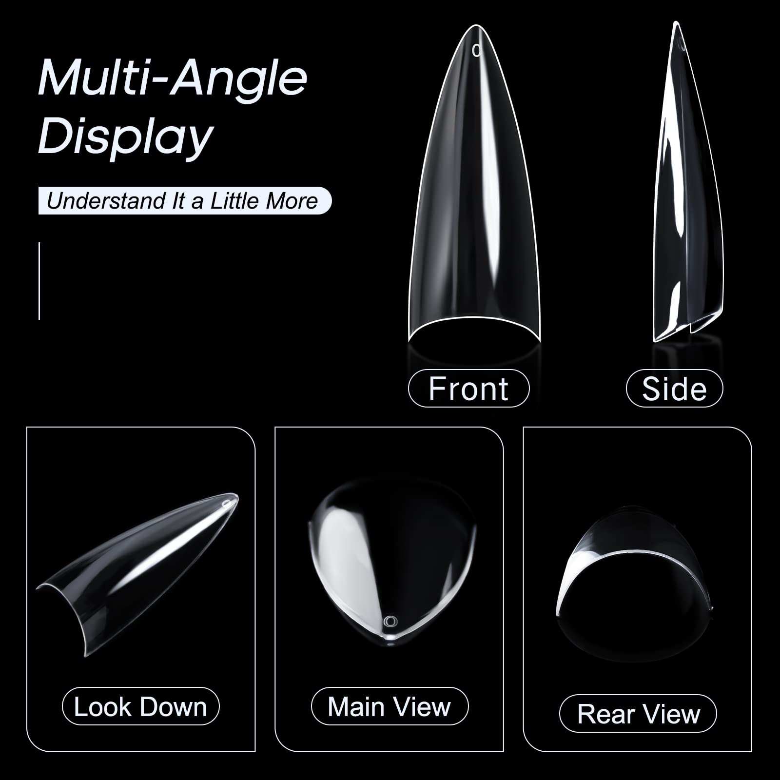 Ranrose 120Pcs Short Nail Tips,Short Soft Gel Stiletto Nail Tips Half Cover False Nail Almond Shape Point Acrylic Sharp Artifici