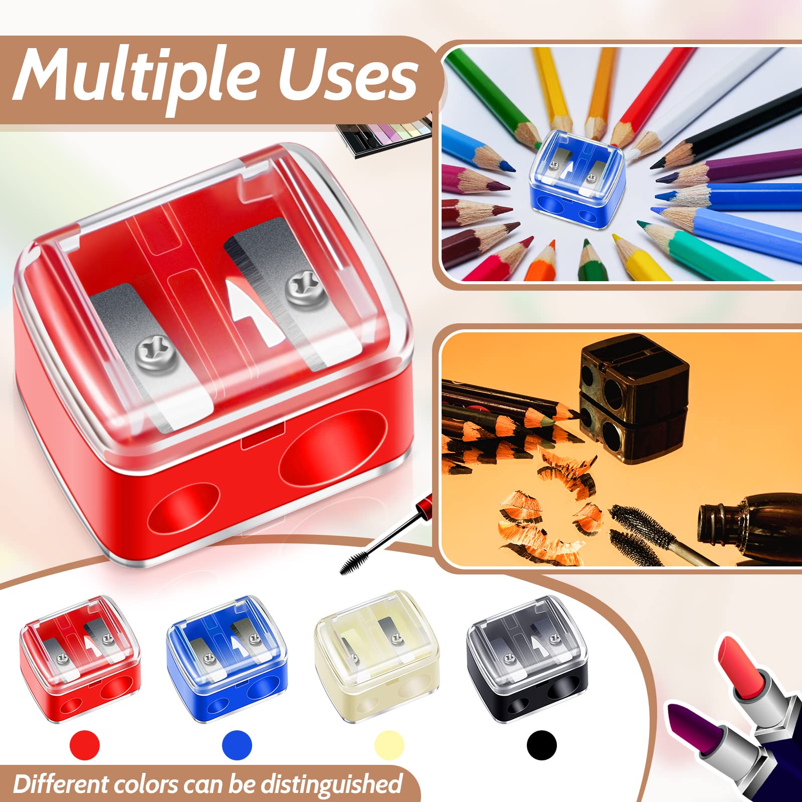 - Q: What types of pencils can I use with the dual sharpener? A: The 5 Pack Cosmetic Pencil Sharpener is designed to accommodate both lip liners and eyeliners, making it versatile for various makeup applications. It fits most eyebrow pencils as well.