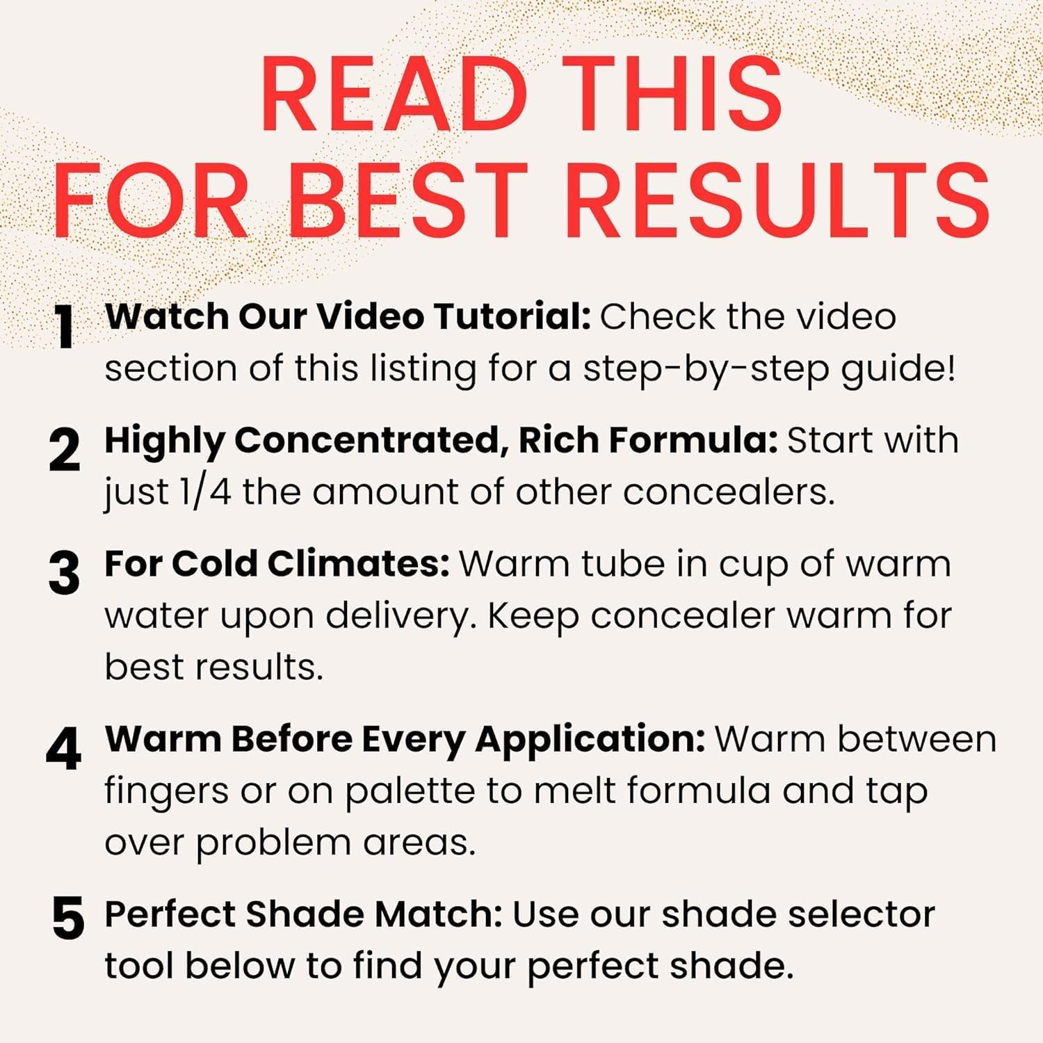 - Q: How do I apply Fièra Luxury Concealer for the best results? A: For optimal application, use only 1/4 the amount of typical concealers. Warm the product on your fingers or a palette until it melts for a flawless finish. Consider using our shade selector tool to find your perfect match.