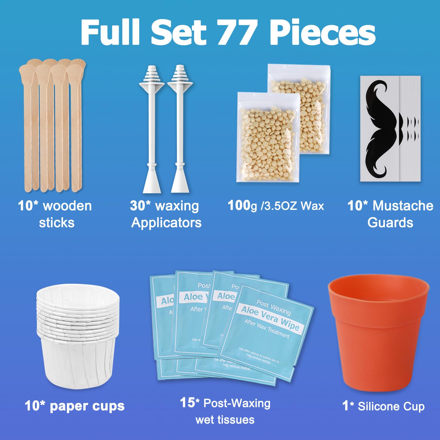 100G Nose Hair Waxing Kit With 30 Applicators (15 Uses), 10 Mustache Guards, 15 Wipes For Quick And Painless Hair Removal On Nos