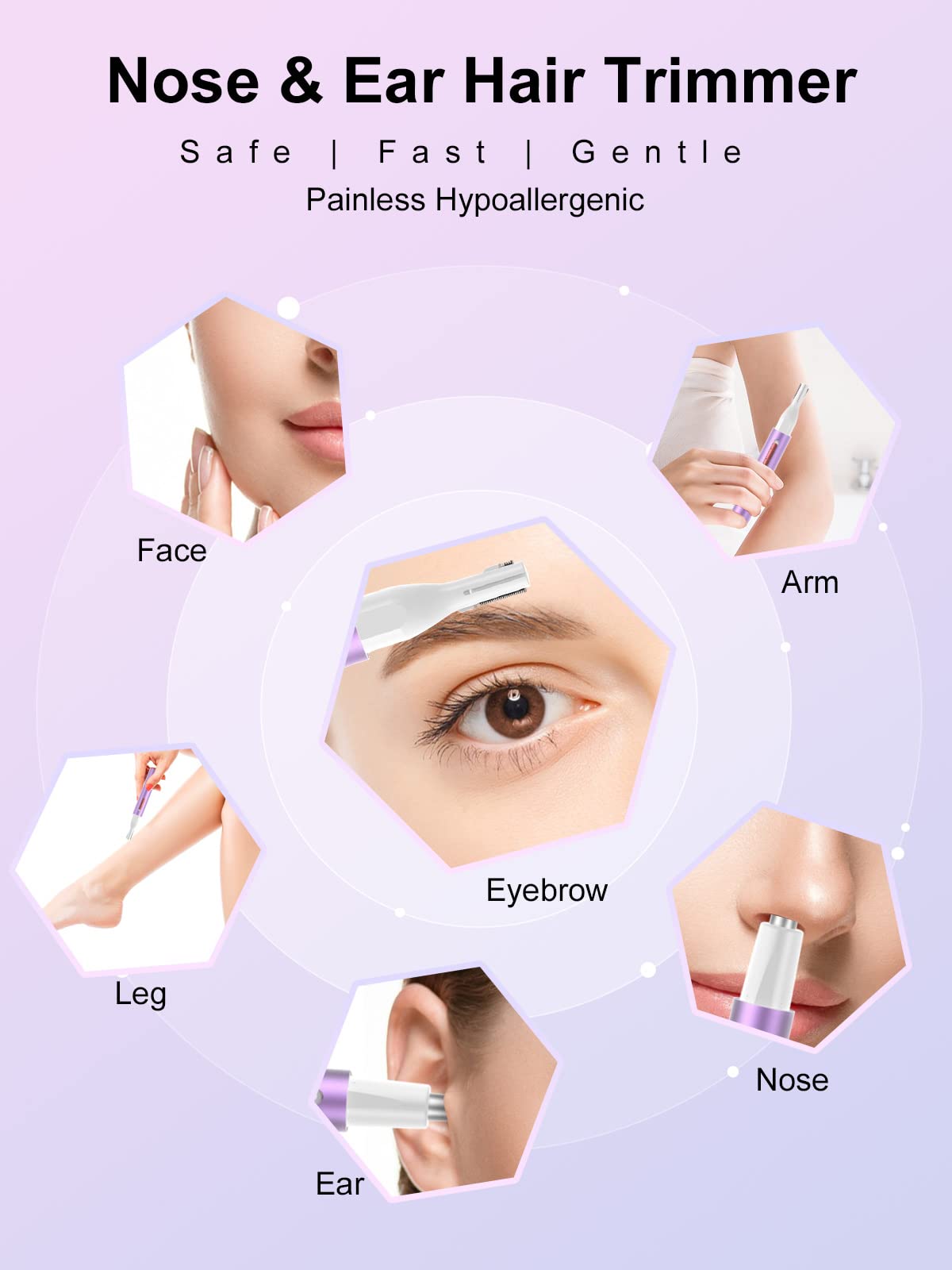 Ahhfei Rechargeable 5 In 1 Ear And Nose Hair Trimmer For Women, 2024 Professional Painless Eyebrow & Facial Hair Trimmer With Po