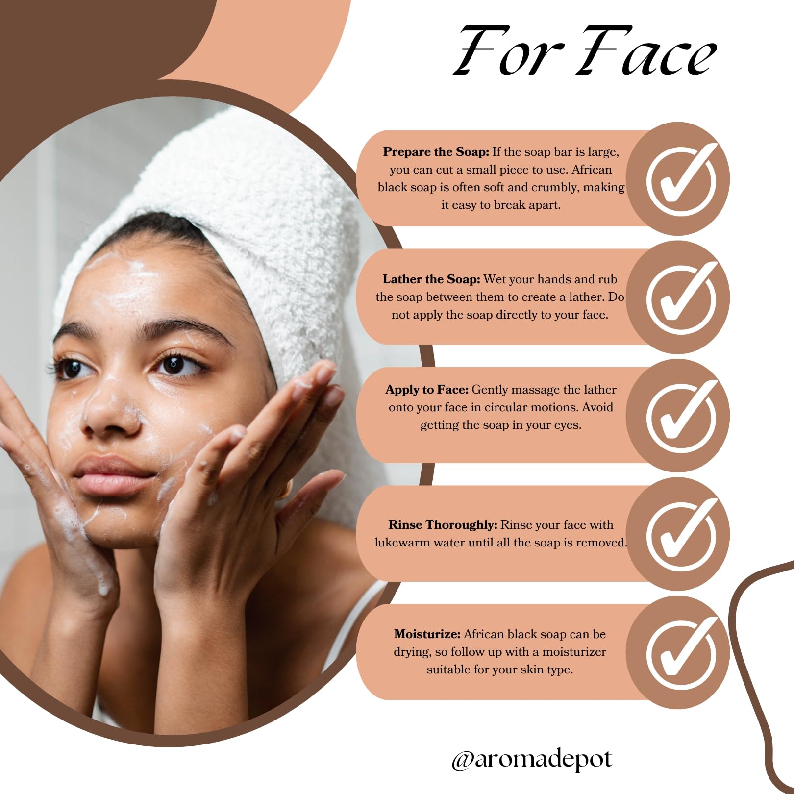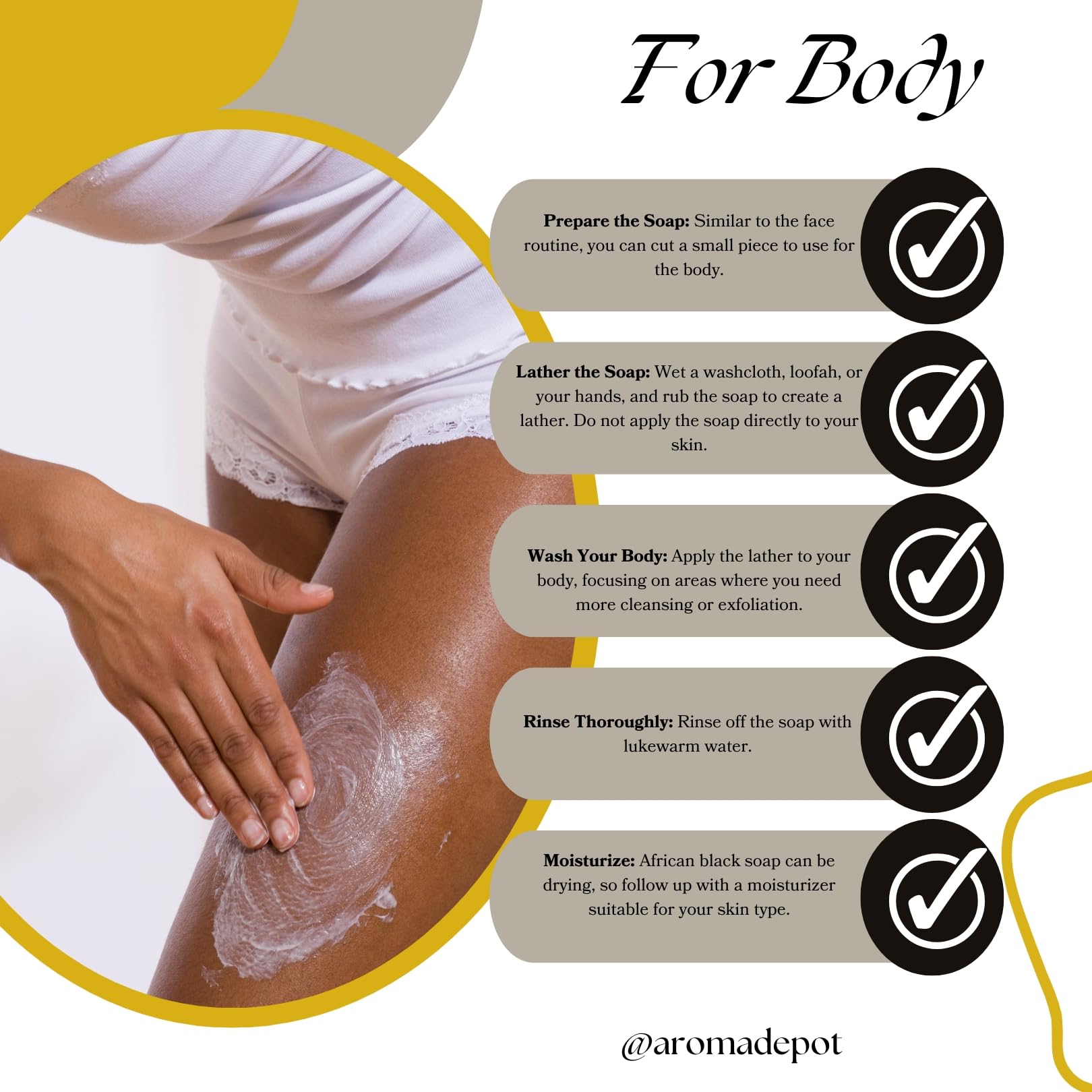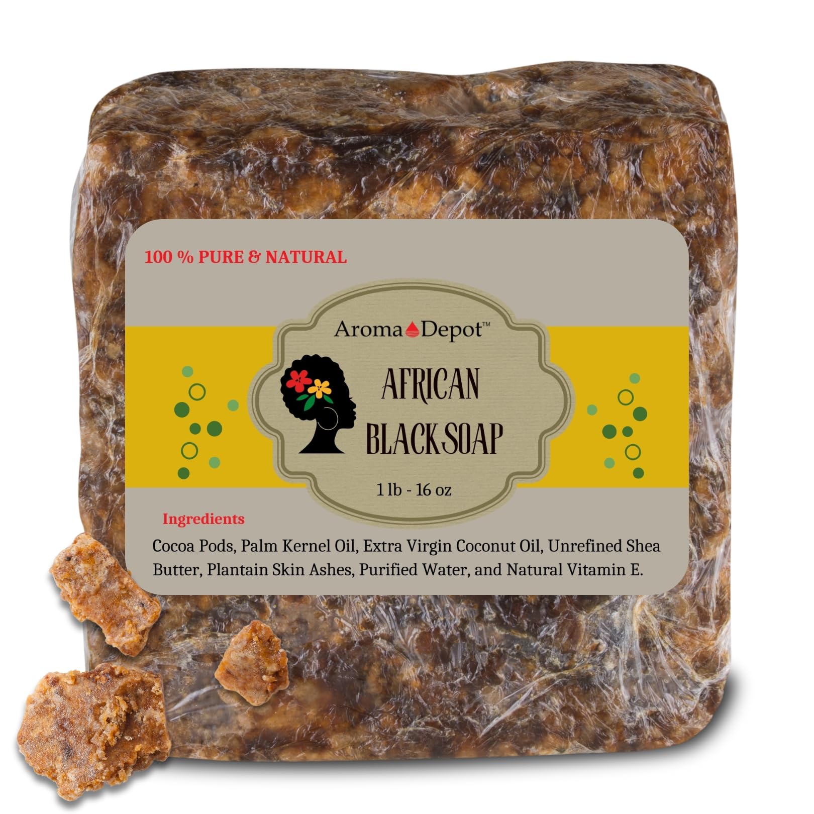 Aroma Depot Raw African Black Soap 1 Lb. 100% Natural Raw Soap For Acne, Eczema, Psoriasis, Scar Removal Face And Body Wash. Han