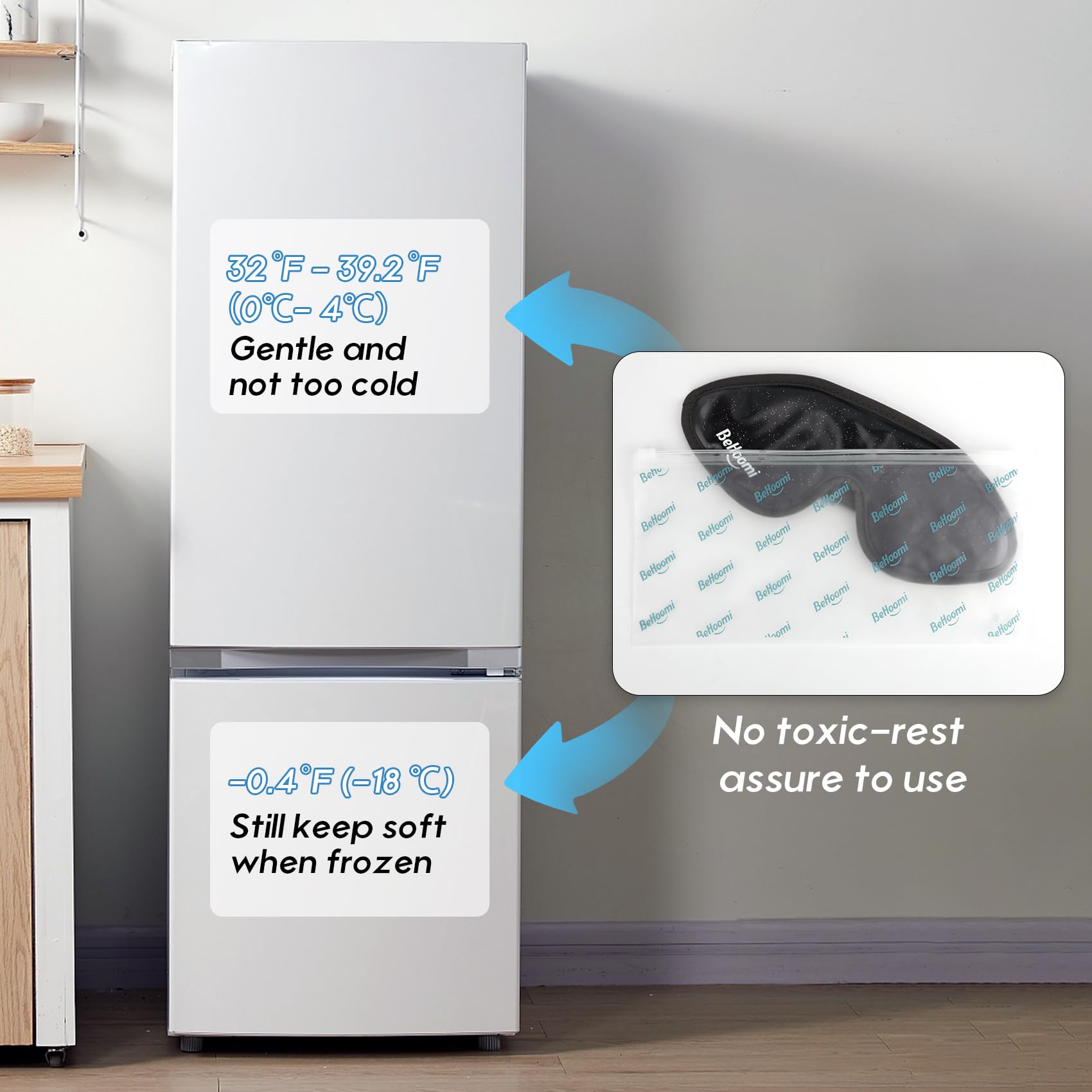 Behoomi Cooling Eye Mask, Gel Eye Mask Cold Eye Ice Pack, Reusable Ice Mask, Cool Relaxation, No Freeze, Comfort Snug Fit, Cold