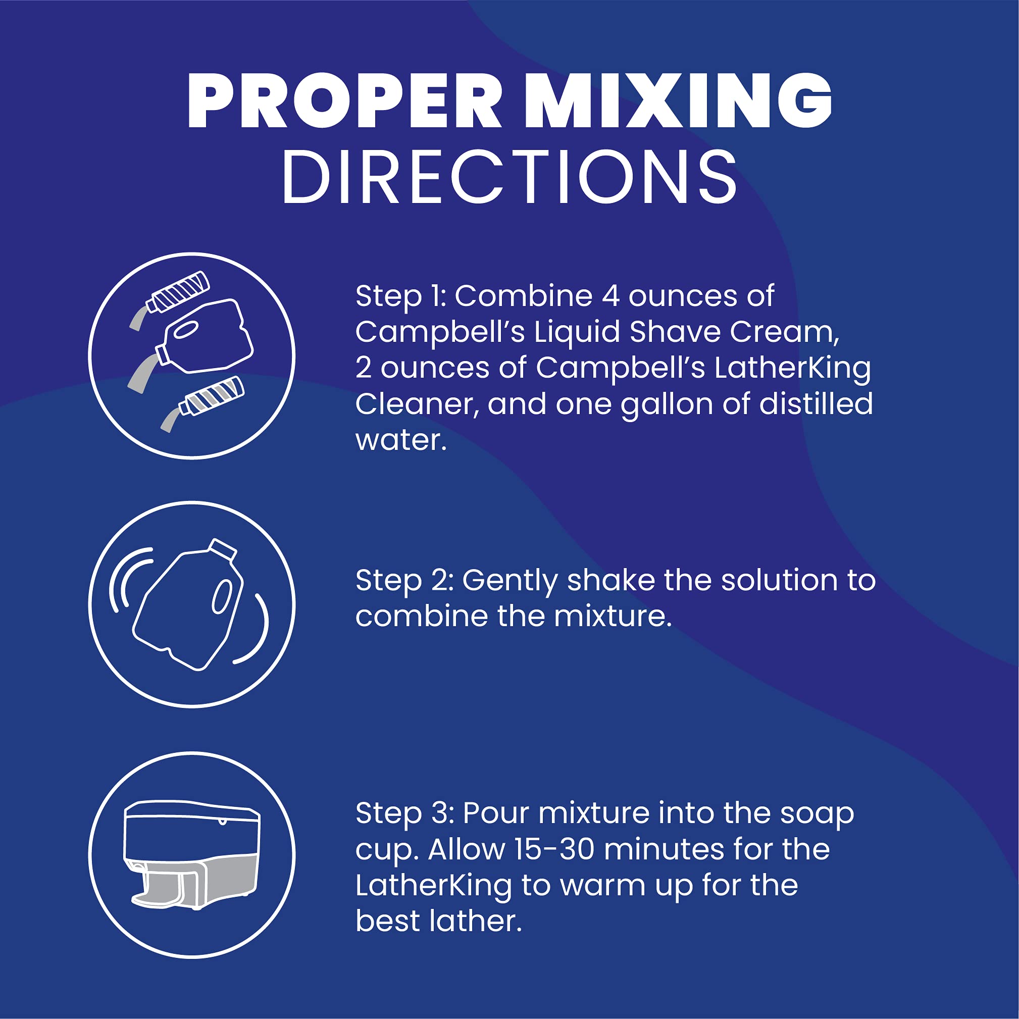 Campbells Liquid Shaving Cream Is Barbershop-Quality Shaving Cream For Professional Barbers And Serious Shavers Alike. Designed As The Original Concentrate For Latherking Hot Lather Machines, This Liquid Shave Cream Has History. The Meticulously Crafted Formula With A Pleasant Fragrance Is Made To Provide A Thick, Super-Wet, Hot Lather With Instant And Complete Dispersion, So Your Clients Can Enjoy A Smooth, Relaxing Shave. Each 8-Ounce Bottle Creates 2 Gallons Of Shaving Cream.When Using Campbells Liquid Shaving Cream In A Latherking Hot Lather Machine, Try This Recommended Combination For The Perfect Lather: Mix 4 Ounces (1/2 Bottle) Of Campbells Liquid Shave Cream And 2 Ounces (1/4 Bottle) Of Campbells Latherking Cleaner With 1 Gallon Of Distilled Water. Shake The Solution Before Filling The Latherking Soap Cup. Do Not Overfill. Because Cold Soap Produces A Poor Lather, The Solution Must Heat In The Machine For 30 Minutes Before Use. Want To Achieve A Thick Lather? Dont Add Latherking Cleaner To The Solution, And Clean Regularly Following The Instructions On The Latherking Cleaner Bottle. The Bottle Dimensions Are 2'' L X 2'' W X 6.5'' H.Formula Ingredients: Deionized Water, Potassium Hydroxide, Propylene Glycol, Coco Fatty Acid, Palmitic Acid, Stearic Acid, Phosphoric Acid, Cocamidopropylamine Oxide, Fragrance.The History Of Campbells Brand Can Be Traced Back To 1939 When Albert B. Campbell Founded The Company Under The Name Of Campbells Products Co. In Chicago, Illinois. Our Companys Main Products Were The Latherking, A Hot Lather Machine That Was The First Of Its Kind, And The Campbells Liquid Shave Cream And Cleaner Solution. Our Technology And Formulas Have Evolved Over The Years, But Our Consistent Quality Has Kept Our Products In Our Customers Shops For Decades. When You Want To Treat Your Clients To The Very Best, Campbells Is The Name You Can Trust.