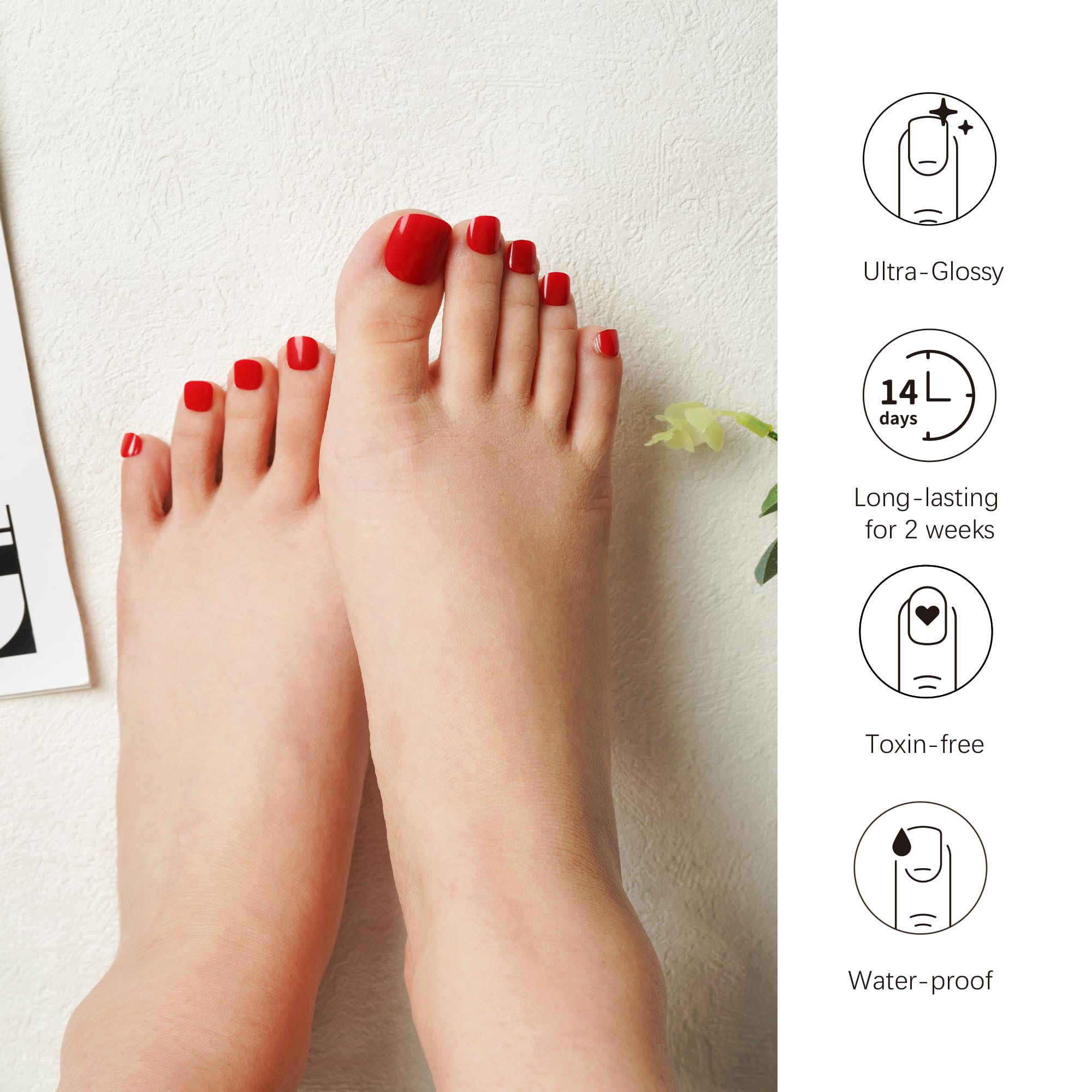 Danni & Toni Semi Cured Gel Toenail Strips Red (Scarlet Delight) Gel Toenail Stickers Glazed Gel Pedi Wraps 37 Stickers