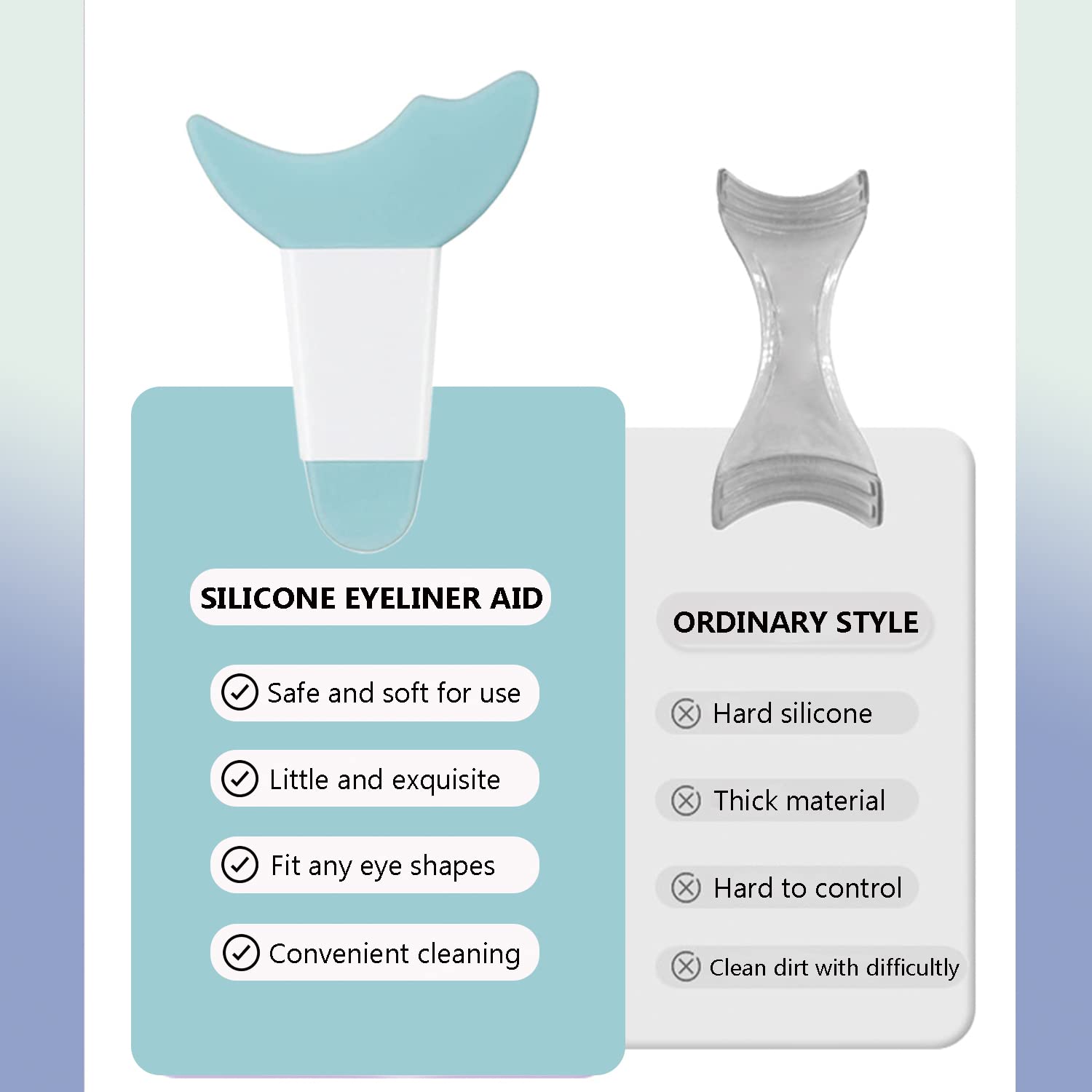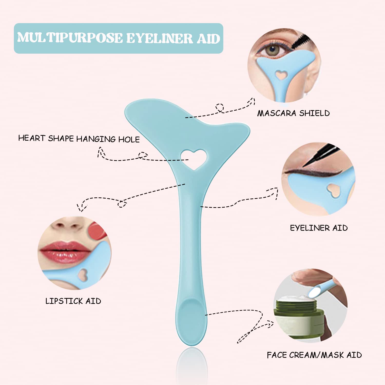 Deacocal Eyeliner Stencils Set Can Help You Get Exquisite Eye Makeup With Ease. This Is A Perfect Combination: Long Handle Eyeliner Aid With Heart Design And A Small Eyeliner Aid.< Br >< Br > Features:< Br > 1.Reusable Mascara Shield Applicator Tool Is Made Of Durable Silicone Material. Silicone Is Soft And Elastic To Fit The Skin, Comfortable To Use, Which Makes You Make Up Quickly. Easy To Clean With Water Or Paper Towels And Save After Use As Well.< Br > 2.This Eye Applicator Guide Tool Is Easy To Operate, Just Follow The Tips To Fit The Position You Need To Draw, And Get The Effect You Want. Great For Beginners And Professionals. < Br > 3.The Ergonomic Handle And Stable Finger Rest Of Eyeliner Stencils Pad Kit Act As An Assistant, Save Your Makeup Time. Suitable For Different Eye Shapes And Face Shapes.< Br >< Br > Application:< Br > Long Handle Eyeliner Aid: Brush Mascara, Draw Eyeliner, Apply Lipstick, Use Face Cream/Mask, Etc.< Br > Small Eyeliner Aid: Draw Eyeliner, Brush Mascara, Apply Eyeshadow, Apply Lower Eyelid, Etc.< Br >< Br > Multiple Color Options:< Br > Blue, Pink, Yellow, Purple.< Br >< Br > Warm Tips:< Br > Please Place Them In A Cool Place To Avoid Direct Sun.