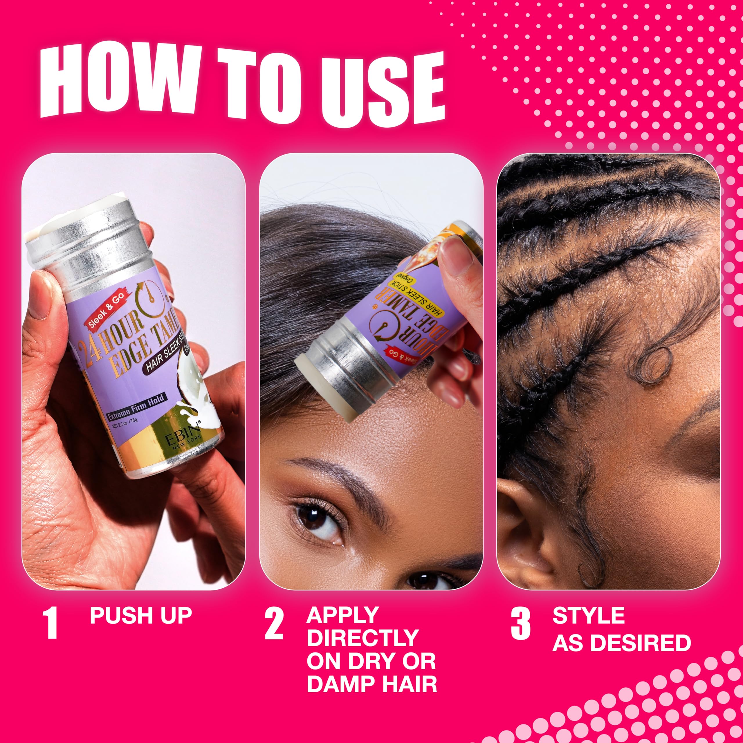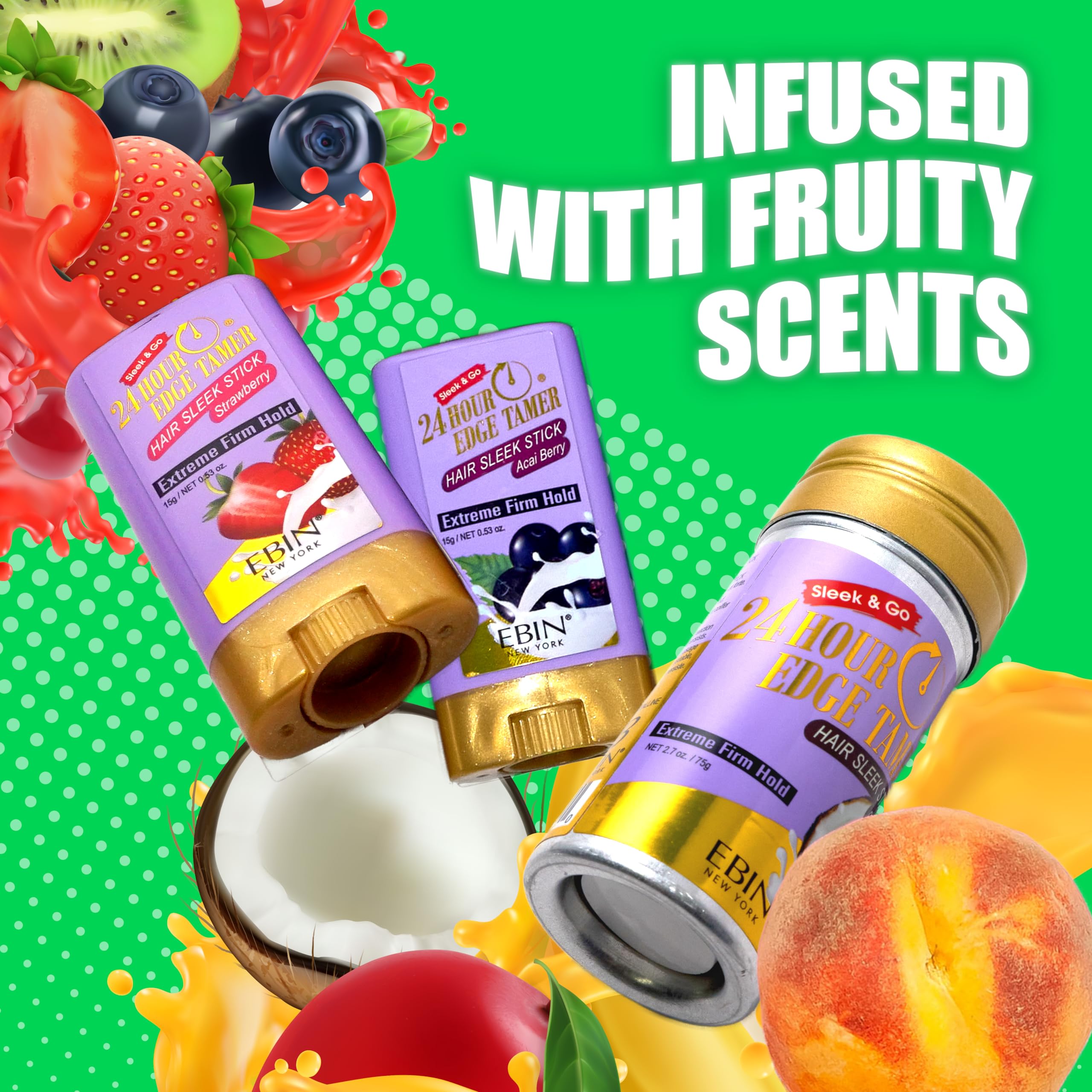 Ebin New York 24 Hour Edge Tamer Hair Sleek Stick, Extreme Firm Hold, 2.7 Oz, Kiwi Pineapple - Sleek & Go, No Flaking And White
