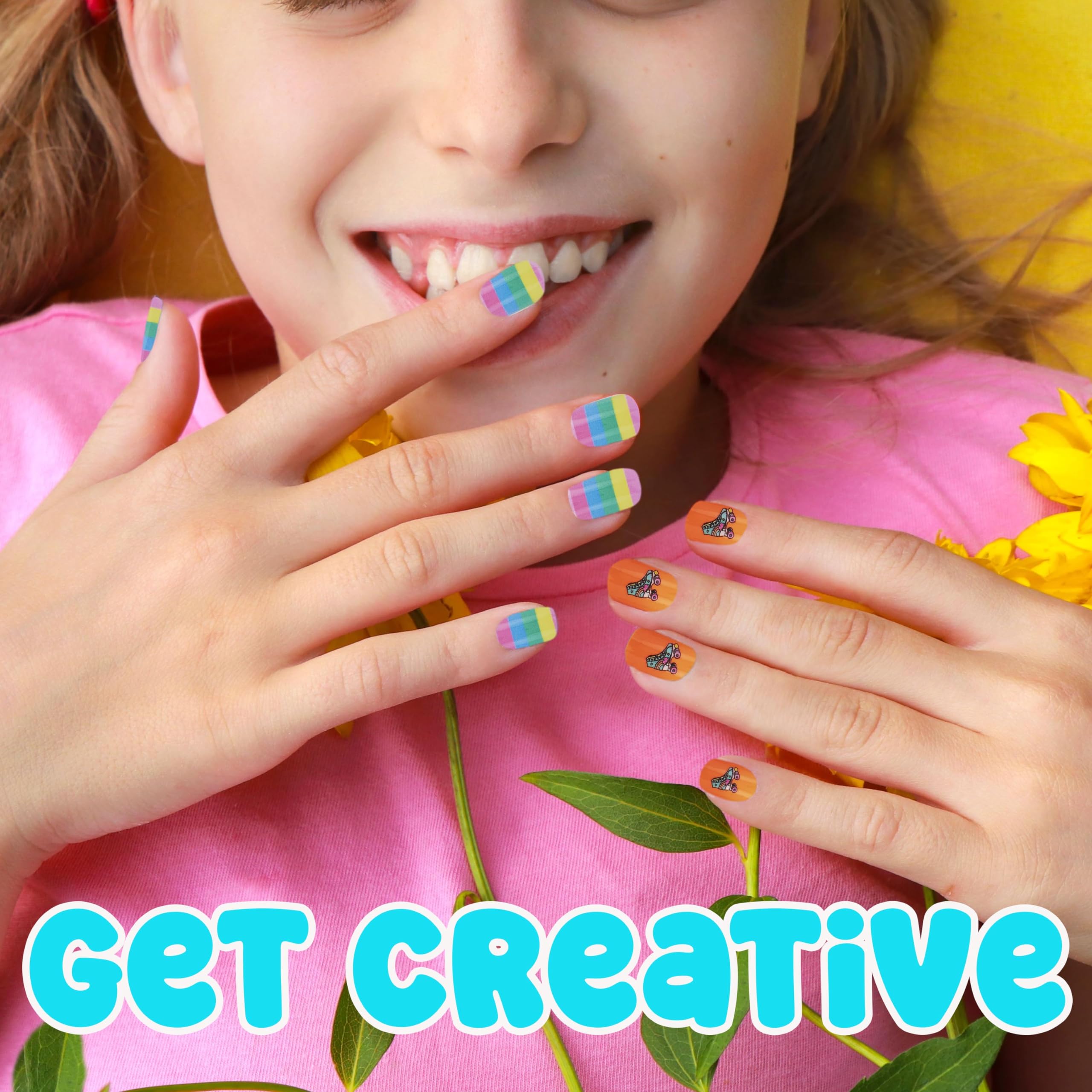 Expressions 7 Day Press On Nail Set Is Perfect For That Little Glam Girl Who Loves Experimenting With Different Beauty Looks And Girly Styles. With 7 Different Sets Of Gorgeous Press On Nails, Your Little One Can Rock A Gorgeous Manicure Every Single Day Of The Week!! The Seven Styles Are: Orange With Roller Skate Decal, Hot Pink, White With Rainbow Splatter, Teal French Tip, Lavender, Rainbow Stripe, And Coral. To Use: 1) Remove Any Nail Polish. Wash Your Hands And Nails Thoroughly. Lightly Buff Your Nails With A Fine Nail File. 2) Choose The Press-On Nail Size That Best Fits Your Nail And Remove Backing To Expose Adhesive. 3) At A 45 Degree Angle, Place The Press-On Nail At The Base Of Your Nailbed. 4) Gently Press Down And Hold For 30 Seconds To Secure Fit. Note: You Can Also Use Nail Glue If You Want The Nails To Stick Longer. Removal: Soak Your Nails In Warm Water For Around 5 Minutes To Loosen The Adhesive, Then Gently Remove The Nails.