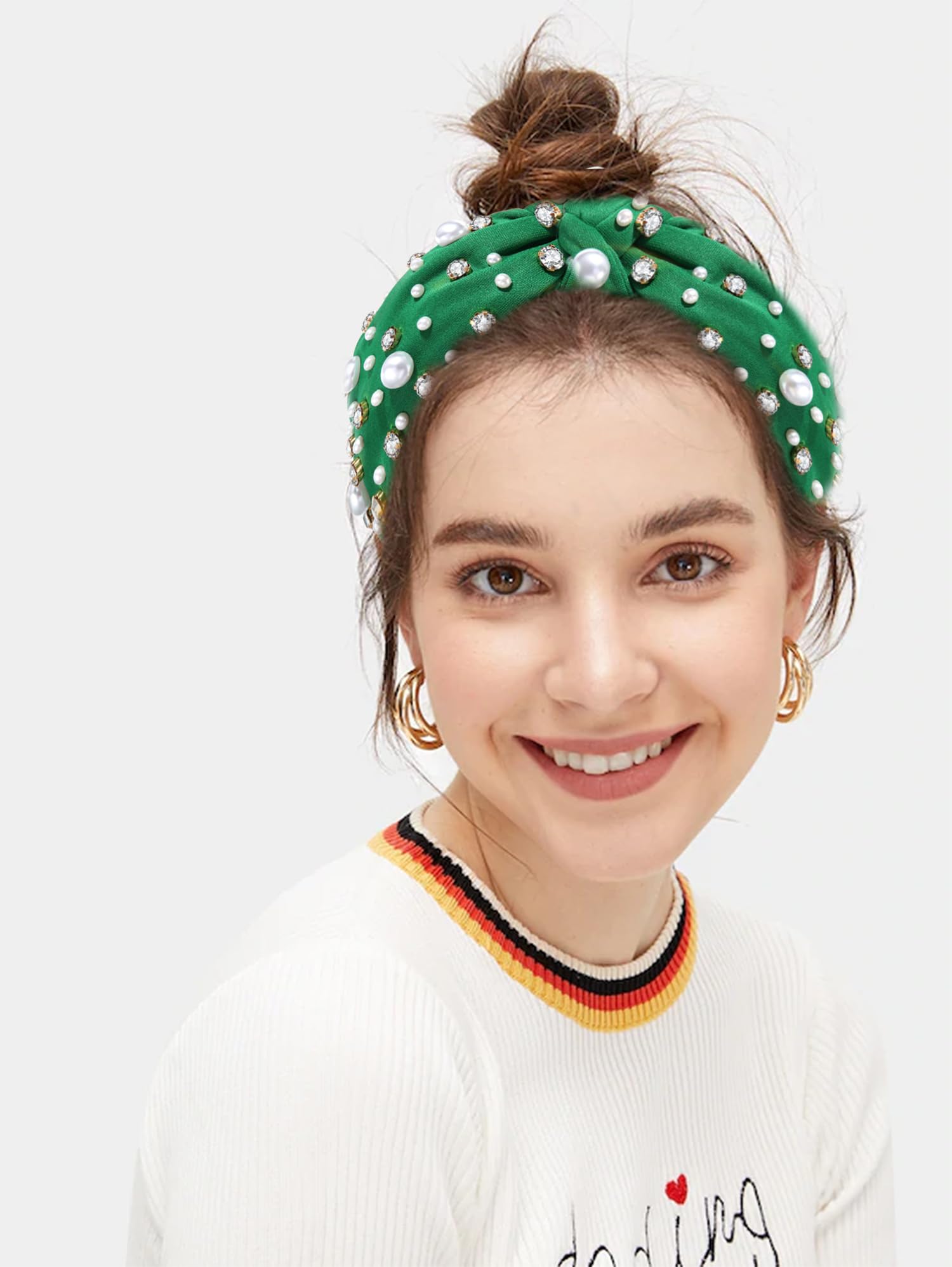 Glbcc Pearl Knotted Headband For Women White Pearl Rhinestone Crystal Jeweled Embellished Hairband Fashion Elegant Ladies Wide T