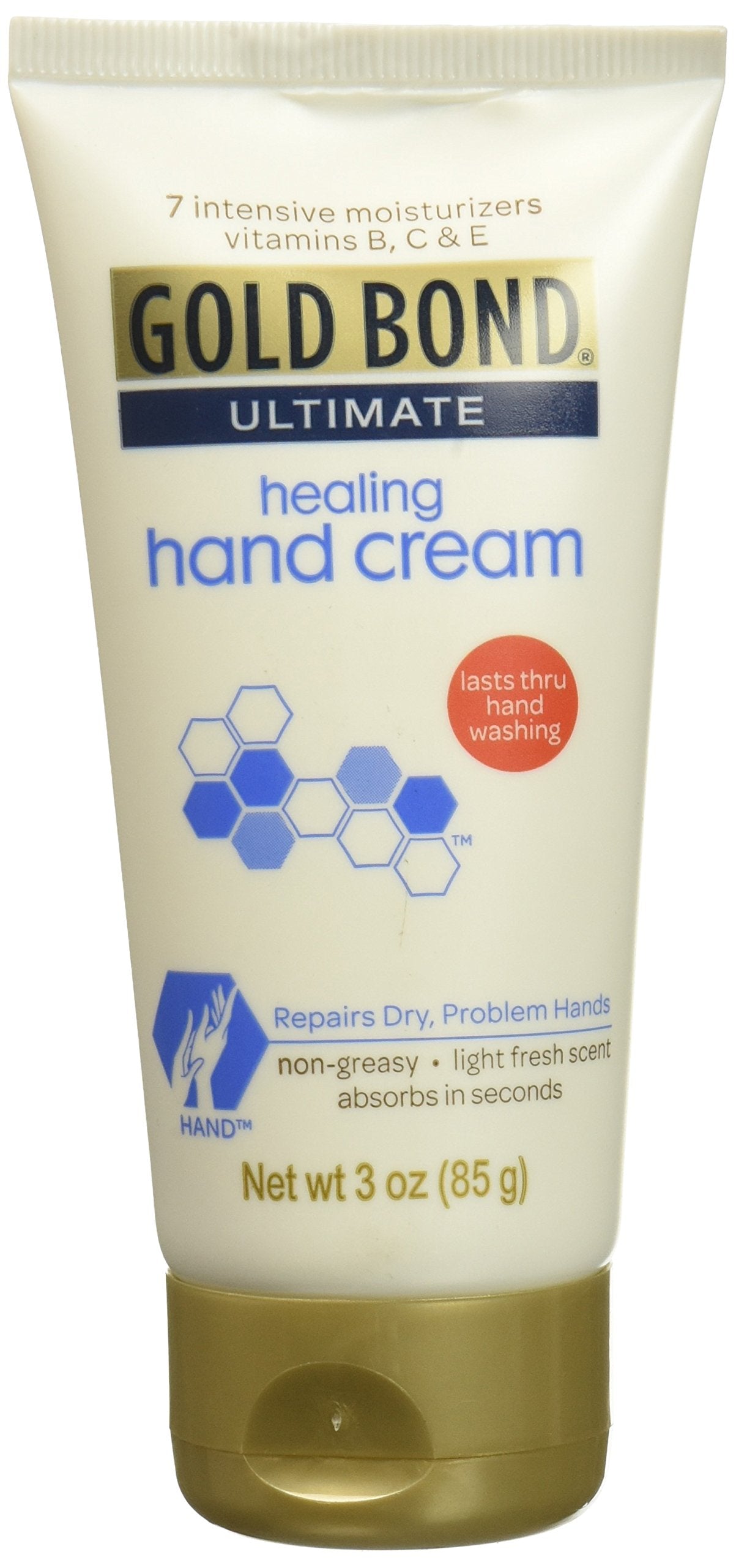 You'Re Washing Your Hands A Lot These Days. Protect Them With Gold Bond Healing Hand Cream. Formulated With Seven Intensive Moisturizers, Plus Vitamins B, C, And E, This Hand Cream Nourishes As It Softens Dry Skin. Gold Bond Hand Cream Absorbs Quickly And Is Nongreasy. It Even Lasts Through Handwashing Because It Adds A Protective Layer Of Moisture Every Time You Use It. Best Of All, This Hand Cream Is Hypoallergenic, Making It Suitable For All Skin Types. Gold Bond Healing Hand Cream Is Also Dermatologist-Tested. Stock Up On 3-Oz. Tubes Of Gold Bond Healing Hand Cream So You Always Have Nourishing Moisture On Hand.