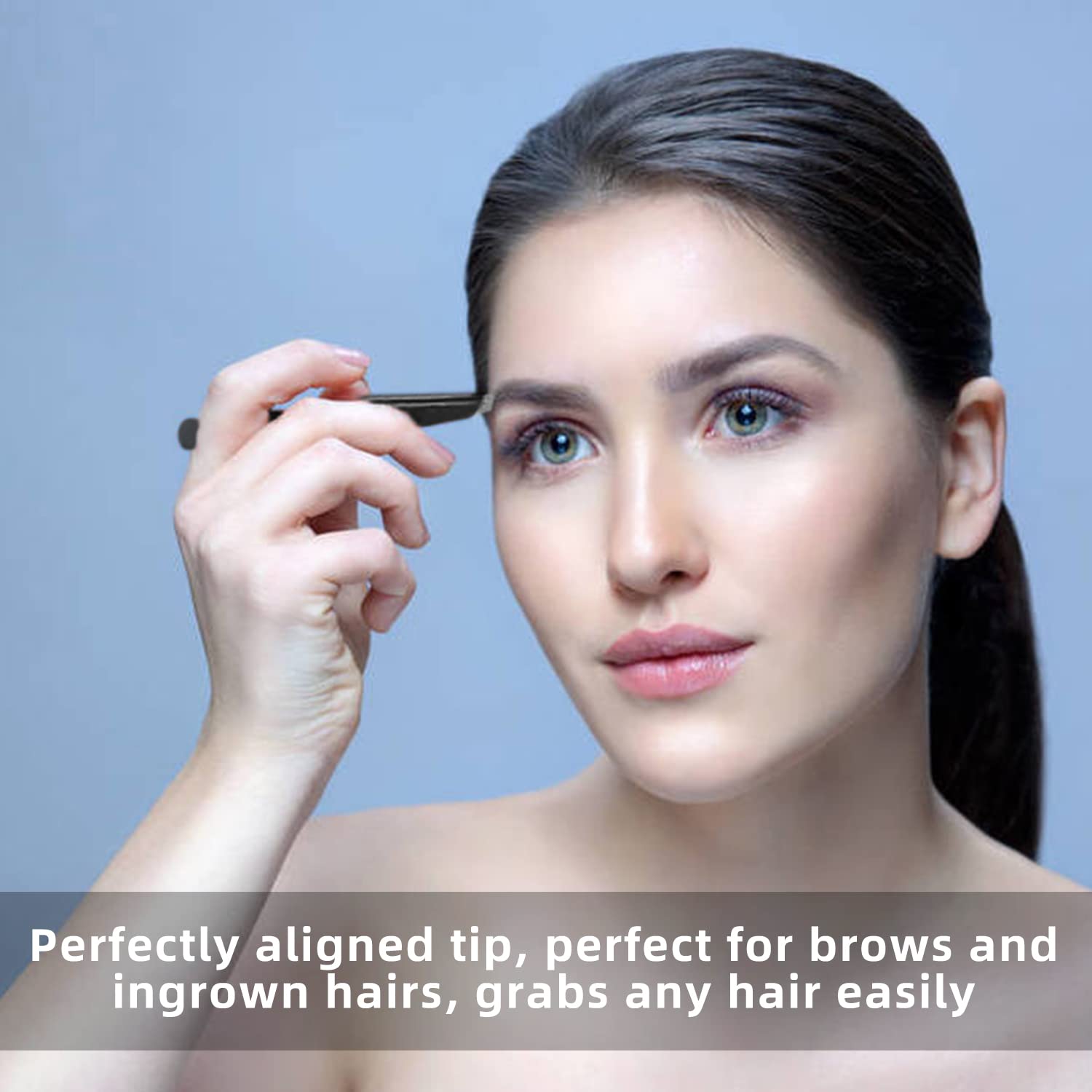 Hengtianmei 8Pcs Lash Tweezers 3 Stainless Straight And 3 Curved Tip Eyelash Tweezers, With 2 Slant Pointed Precision Eyebrows T