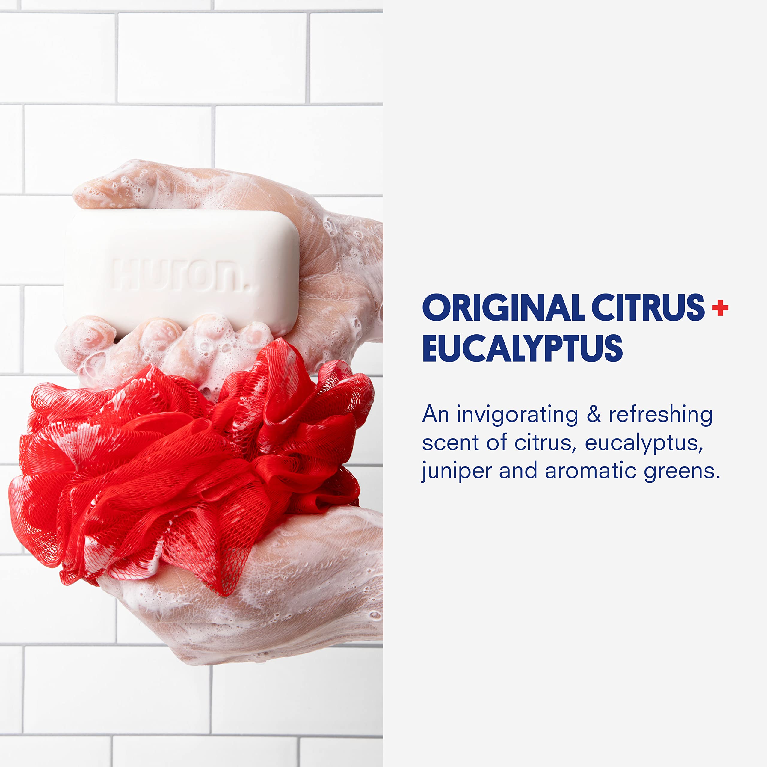 Huron Bar Soap - Citrus + Eucalyptus, 3 Pack - Crisp & Invigorating Scent Of Citrus, Eucalyptus, Mint & Aromatic Greens