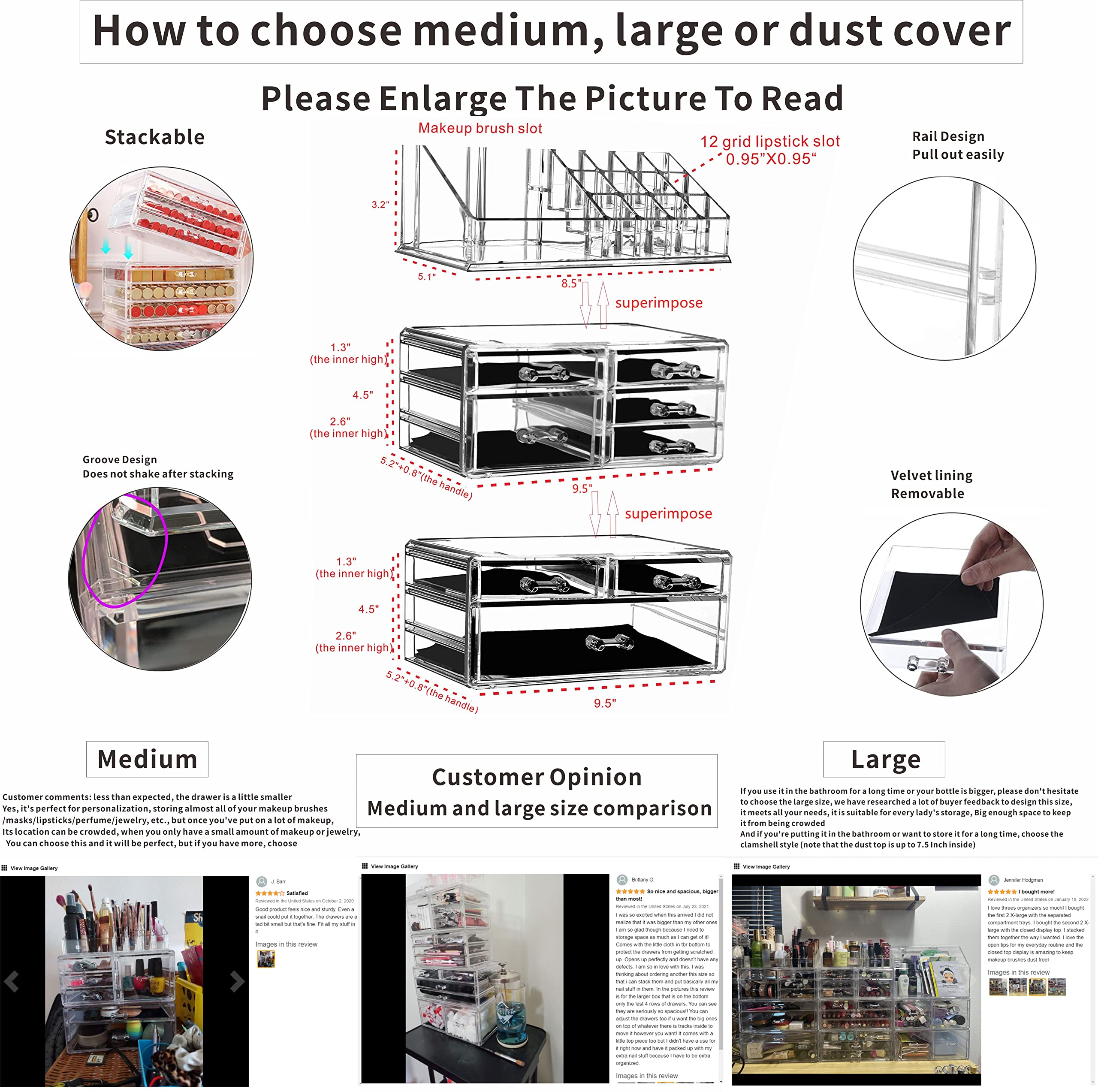 Large Clear Makeup Organizer Skin Care Cosmetic Display Cases Stackable Storage Box Make Up Container Cube With 8 Drawers,Set Of
