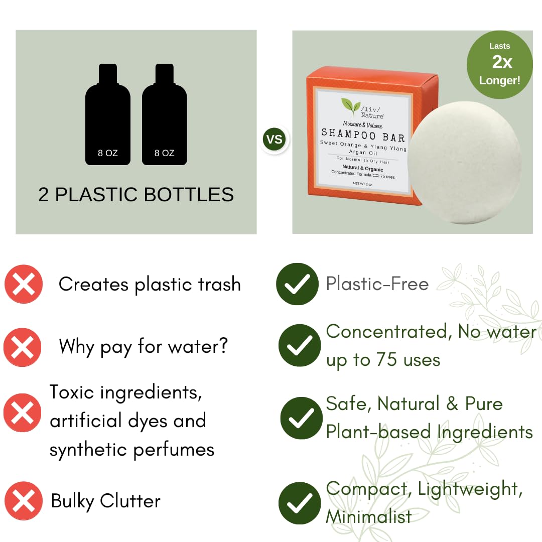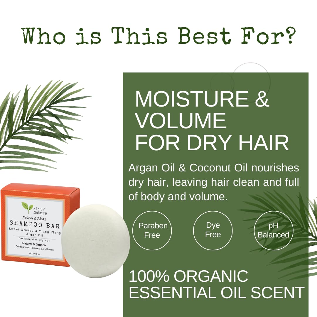 /Liv/ Nature'S No Sodium Lauryl Sulfate Shampoo Bar And Conditioner Bars Are Solid, Plant-Based Products That Are Used In Place Of Traditional Shampoos And Conditioners. Our Shampoo Bars Provide A Convenient Way To Clean Your Hair, While Also Being Good For The Environment. They Are Also More Concentrated Than Liquid Shampoos, So A Little Goes A Long Way. They Do Not Produce Plastic Waste, Because There Is No Bottle To Throw Away Once You'Re Done Using Them. Our Products Are Always Made With Nourishing Ingredients And Do Not Contain Dyes, Synthetic Perfumes, Parabens, Or Formaldehyde. Scented Shampoo Bars Come In A Variety Of Fragrances, Ranging From Floral, Citrusy, To Woodsy, So You Can Find One That Suits Your Preference. Our Bars Are Easy To Use-Just Massage The Bar Into Wet Hair And Scalp, Lather It Up, And Rinse. They Can Be Used On All Types Of Hair And Are Great For Travelers And Those Looking To Cut Down On Their Plastic Usage. All In All, Shampoo Bars Are A Great Way To Keep Your Hair Clean And Healthy Without Having To Sacrifice Convenience. Ingredients: Sodium Coco Sulfate (From Coconut), Coconut Oil, Cocoa Butter, Argan Oil, Organic Sweet Orange Essential Oil, Organic Ylang Ylang Essential Oil, D- Panthenol (Vitamin B-5)