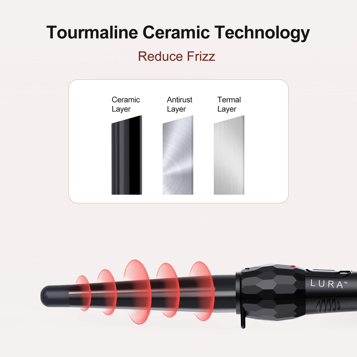 Lura Ceramic Tourmaline Coating Curling Wand, 3/4-1 1/4 Inch Barrel Hair Curler With 2 Heat Setting (320/410?), Suitable For All