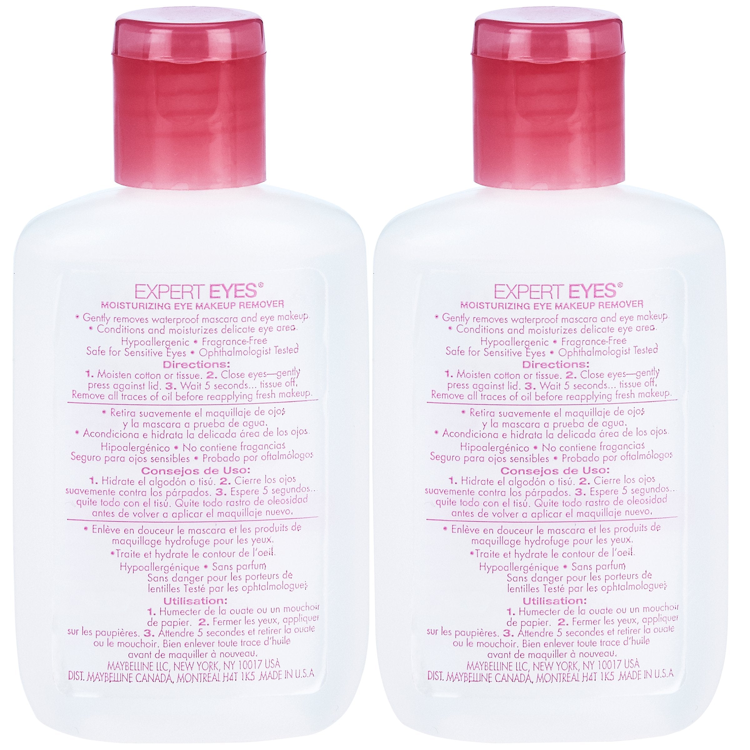 - Q: What size is the Maybelline New York Expert Eyes Moisturizing Eye Makeup Remover? A: The product comes in a convenient 2 Count pack, making it easy to carry and store for regular use.
