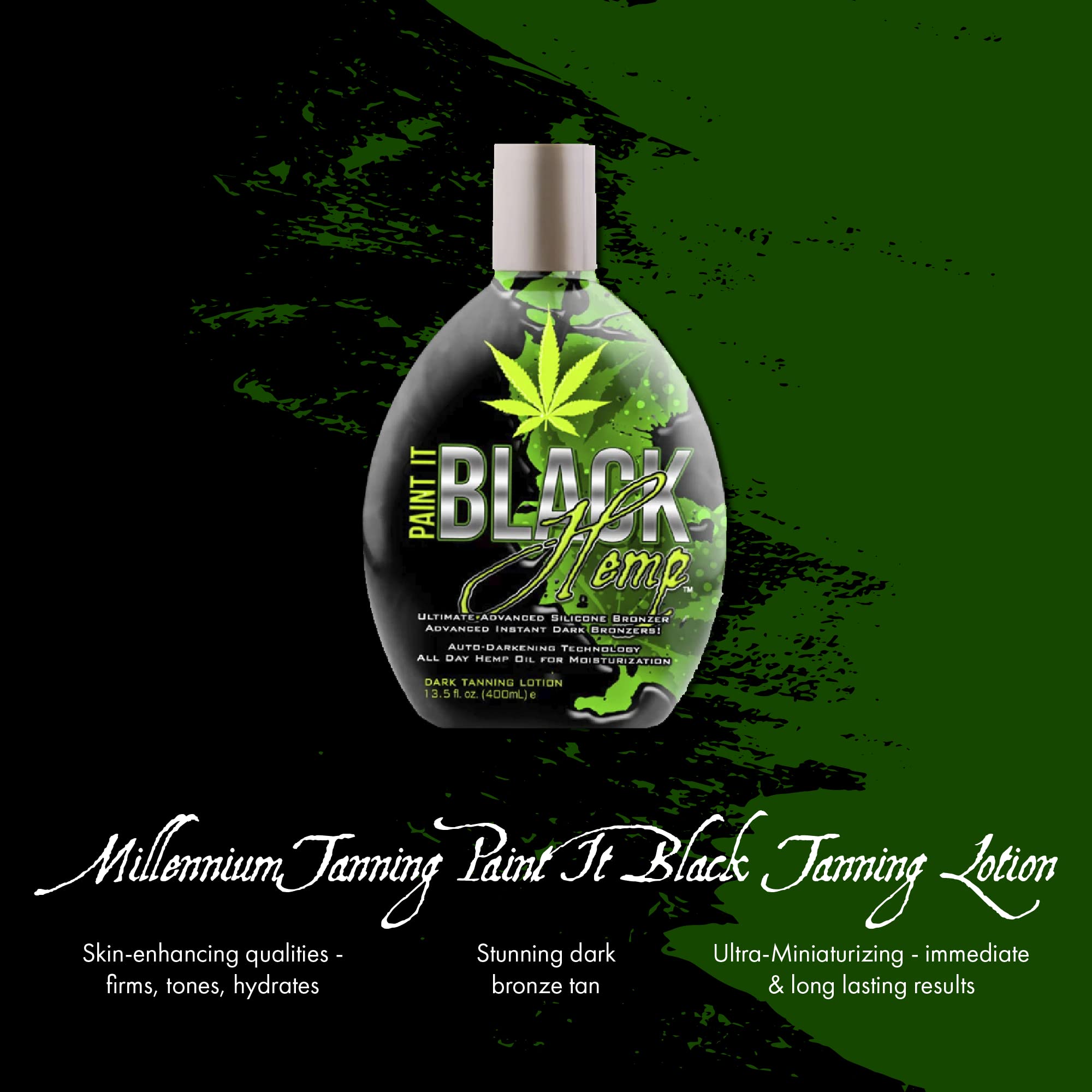 Paint It Black Hemp Bronzer - Millennium'S Popular Paint It Black Bronzer Is Now Available With A Hemp Seed Oil Infusion. Unique Auto-Darkening Technology Delivers Extreme Dark Bronze Tanning Results Through Its Luxurious Hemp Seed Oil Emulsion Blend. Experience Stunning Dark Tan Color And Ultra-Miniaturization That Lasts All Day. Tan Accelerator, Bronzer, And Silicone Emulsion Infused With Hemp Seed Oil, Skin Firming, With A Refreshing And Clean Scent.