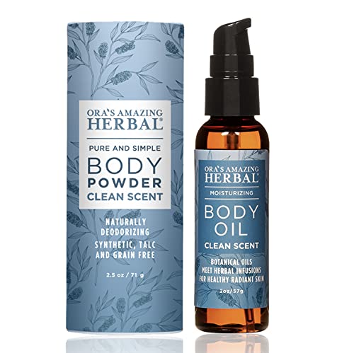 Natural Body Powder And Oil Set, Dusting Powder, Body Oil, No Talc, Corn, Grain, Gluten, Clean Scent Powder 25 Oz With Travel Si