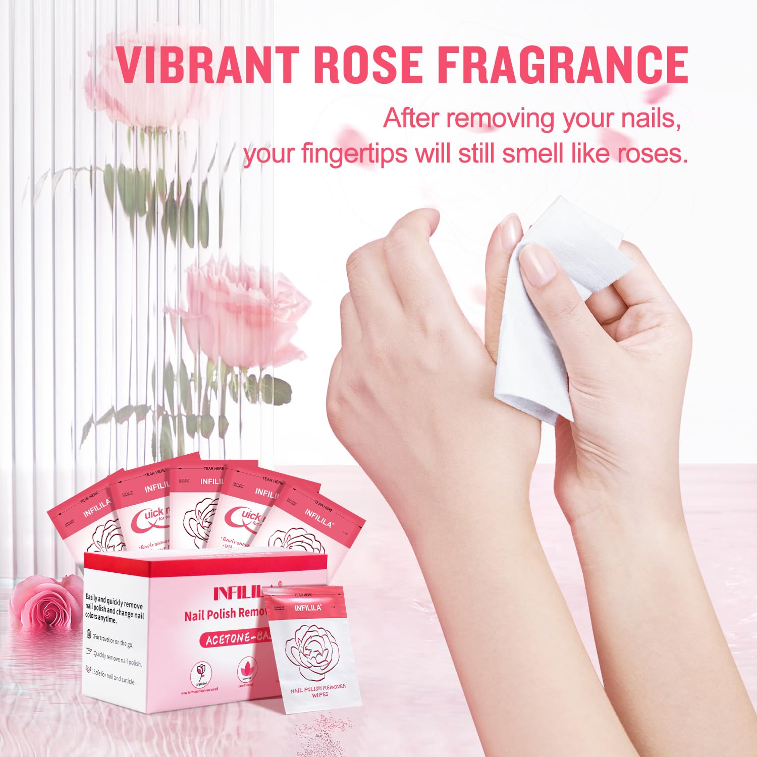 Nxj Infilila Nail Polish Remover Pads, 2024 Newest Acetone Nail Polish Remover, 50Pcs Quick Nail Polish Remover Wipes, Individua