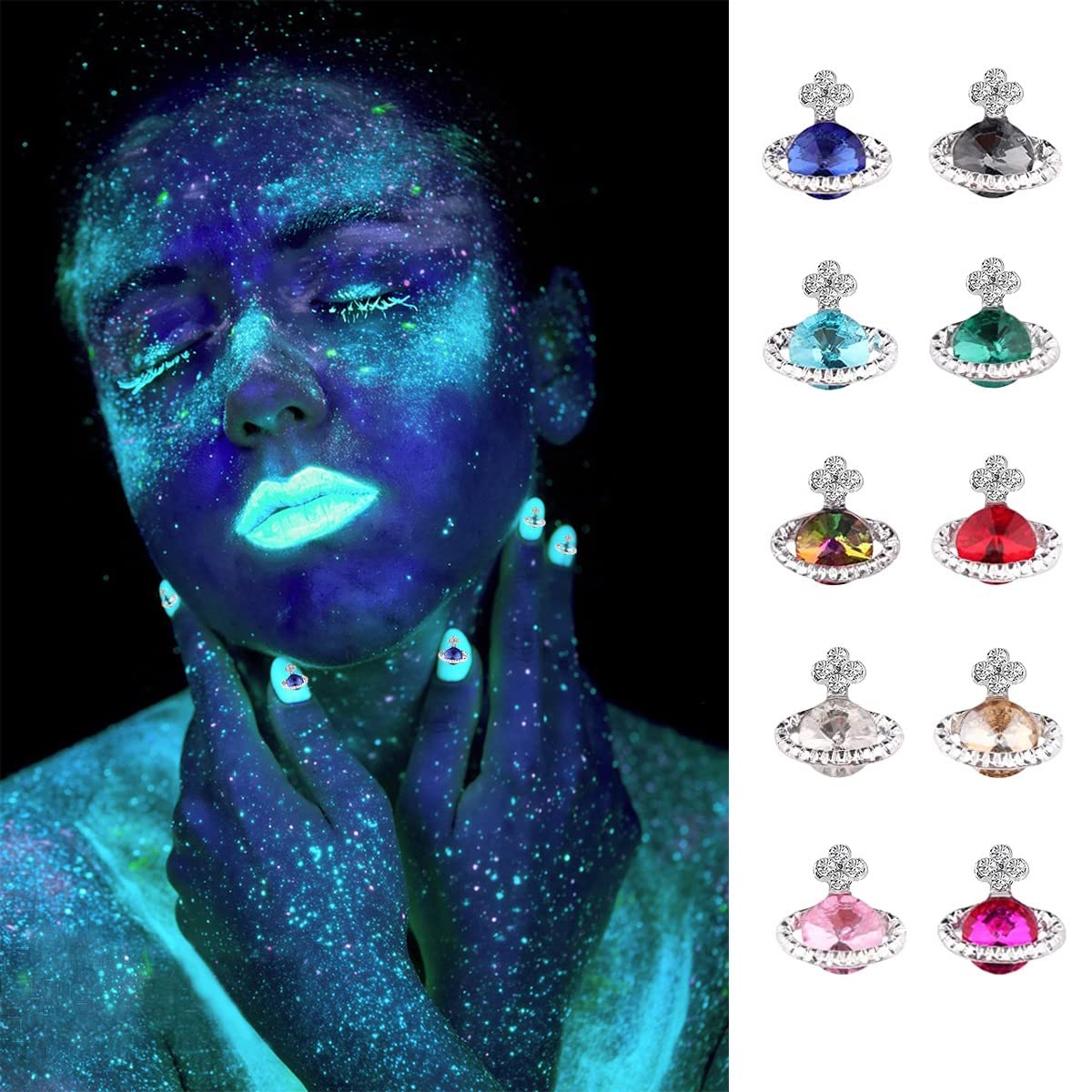 Planet Nail Charms, 54 Pcs 3D Nail Rhinestones Shiny Silver Saturn Shape, Nail Art Nail Gems Diamond Crystals Luxury Jewelry Nai