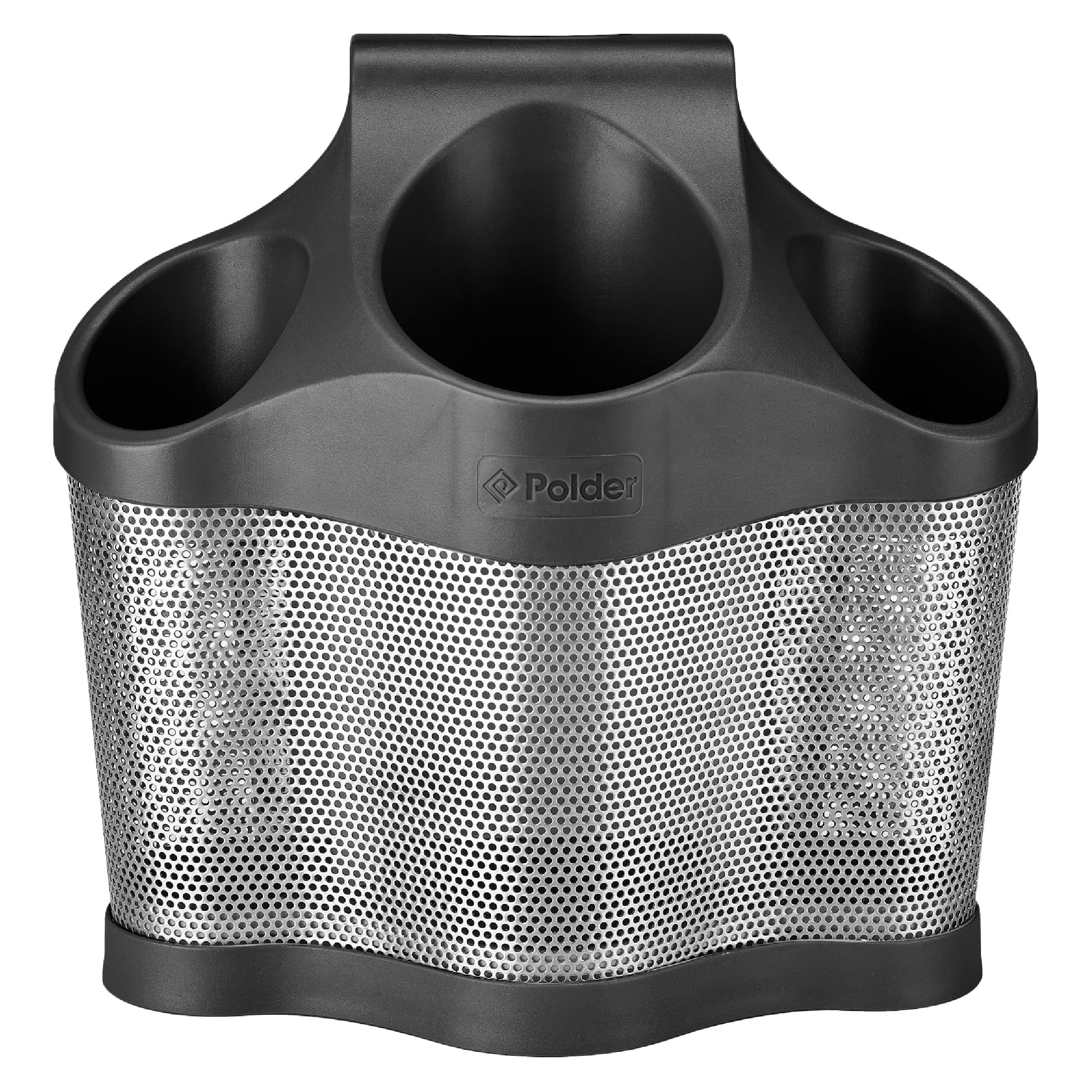 - Q: How many compartments does the Polder Style Station have? A: The Polder Style Station includes three spacious compartments with oversized openings, designed to accommodate a hair dryer, curling iron, brushes, and other styling tools.