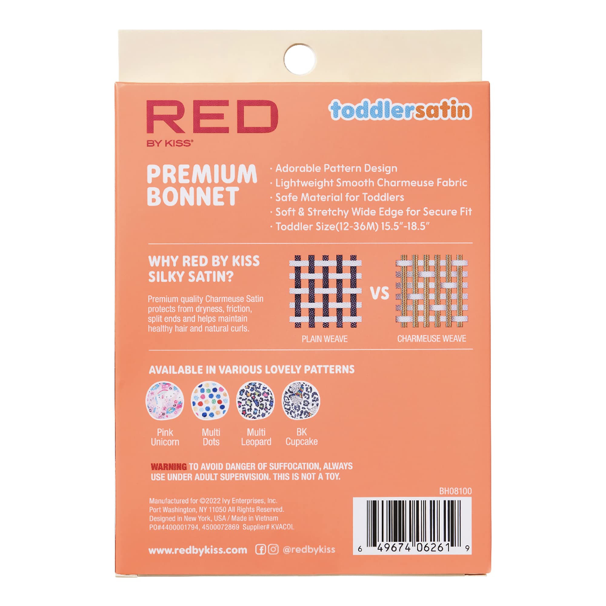 Red By Kiss Toddler Satin Bonnet Sleep Caps Hair Wraps Hair Bonnet