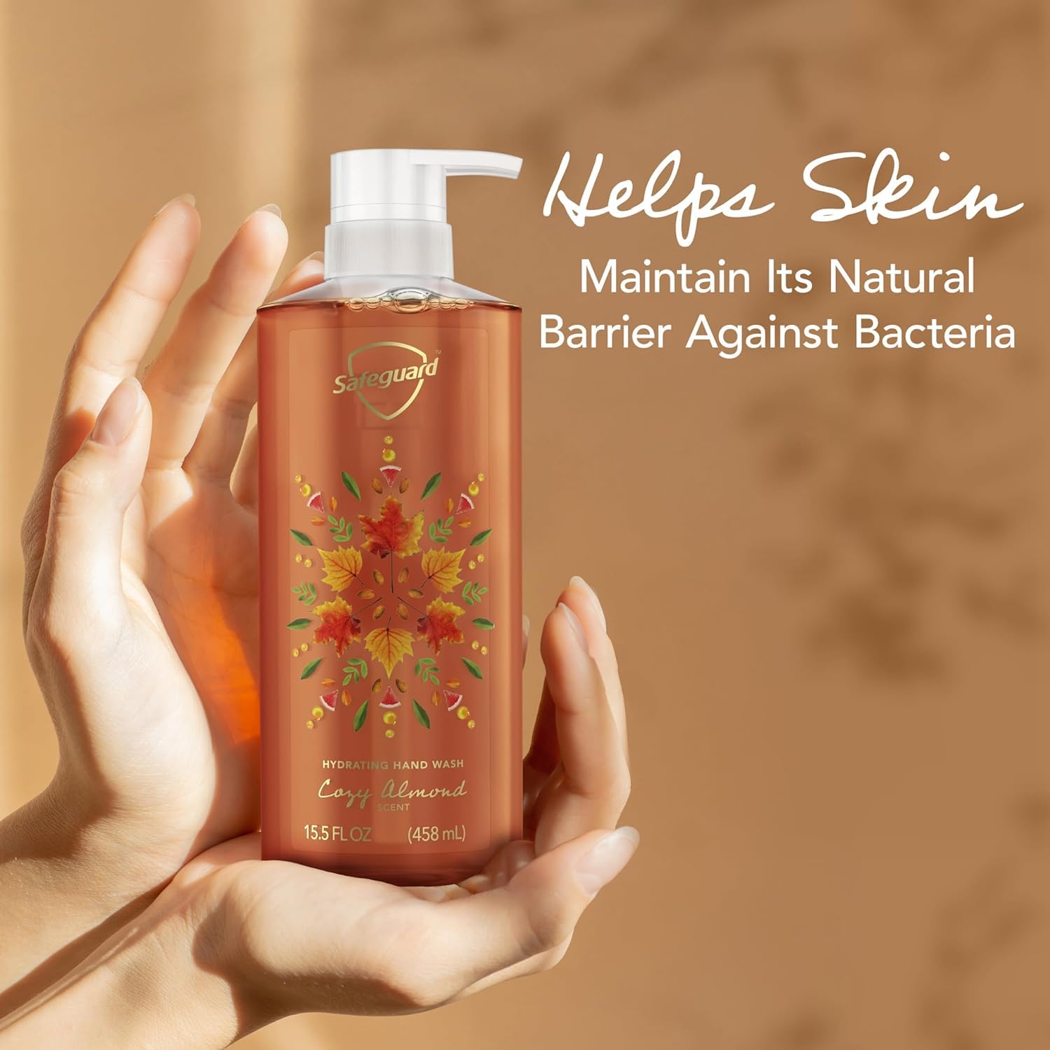- Q: What is the fragrance of Safeguard Hydrating Liquid Hand Soap? A: The Safeguard Hydrating Liquid Hand Soap features a warm 'Cozy Almond' aroma, combining the comforting scent of roasted almonds with subtle hints of vanilla and creamy apricot, providing a delightful washing experience.