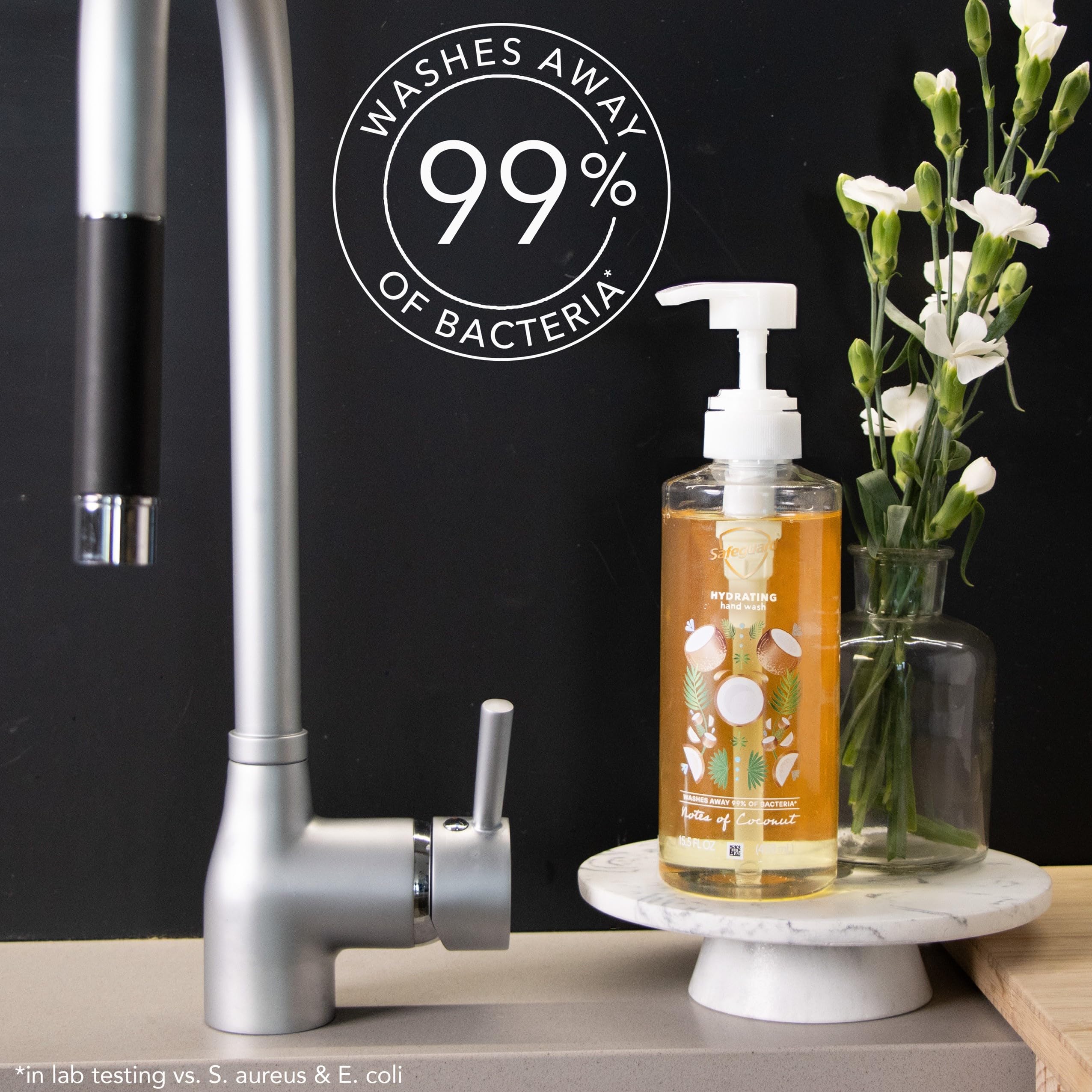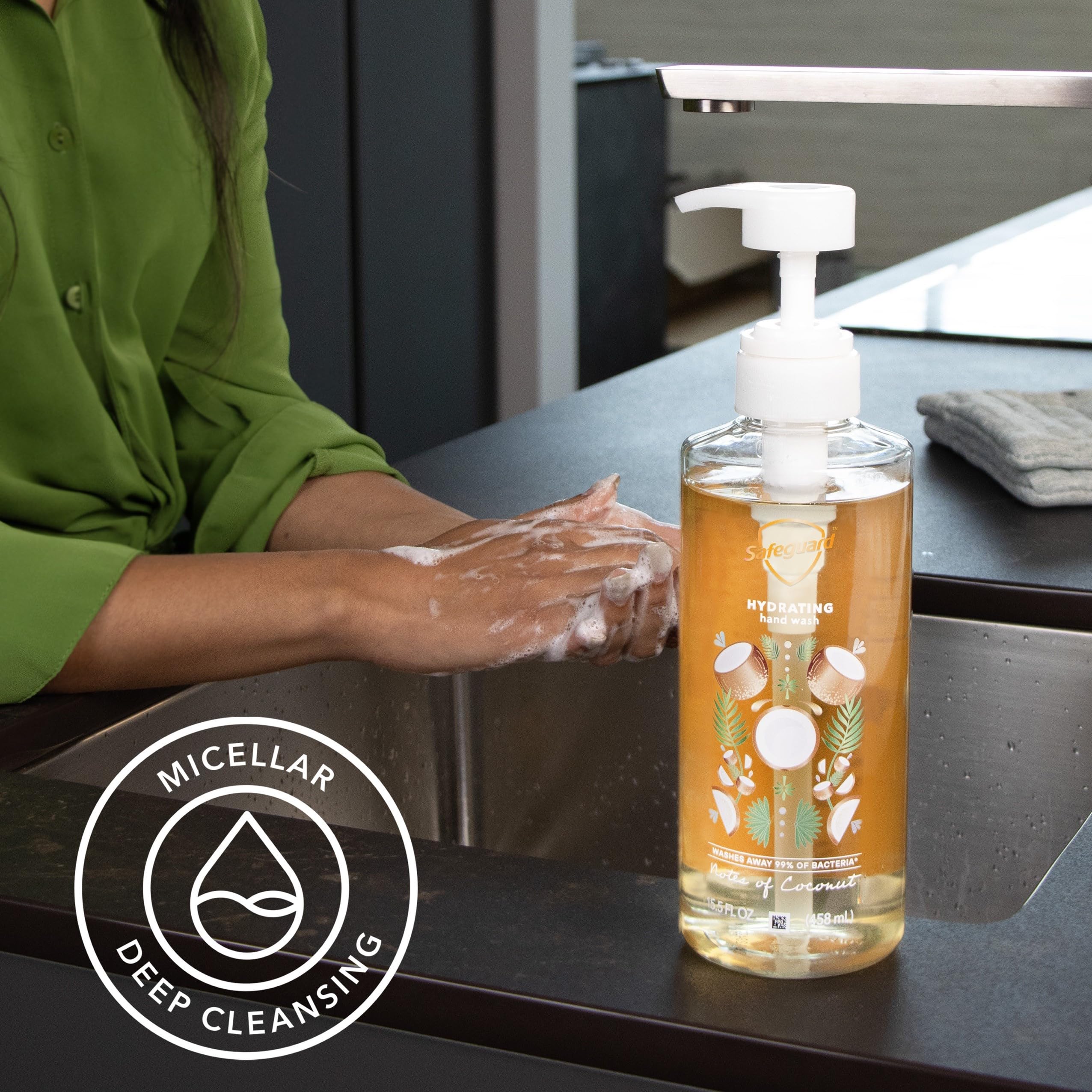 Safeguard 'S Notes Of Coconut Hand Wash Is Sure To Transport Your Senses To The Nearest Sandy Beach With It 'S Balance Of Fresh, Creamy, Warms Notes Of Coconut Milk. This Hydrating Hand Wash Is Made With A Natural Moisturizing Factor That Helps Maintain Skin 'S Protective Barrier. It Doesn 'T Just Wash Away 99% Of Bacteria* - It Balances Skin 'S Ph & Helps Retain Moisture**, Enabling Skin To Be The First Line Of Defense Against Bacteria. This Micellar Deep Cleansing Formula Is Dermatologically Endorsed By The Skin Health Alliance. Show Your Hands Some Love Every Time You Wash With Safeguard. With Over 60 Years Of Experience, Safeguard Wants Help Keep Your Loved Ones Healthy So You Can Keep Enjoying Life. Directions For Use: Turn The Pump Counterclockwise To Unlock, Wet Hands, Then Dispense 5 Ml Of Soap Into Your Hands And Scrub Thoroughly For 30 Seconds. * In Lab Testing Vs. S. Aureus & E. Coli ** Vs. Ordinary Soap