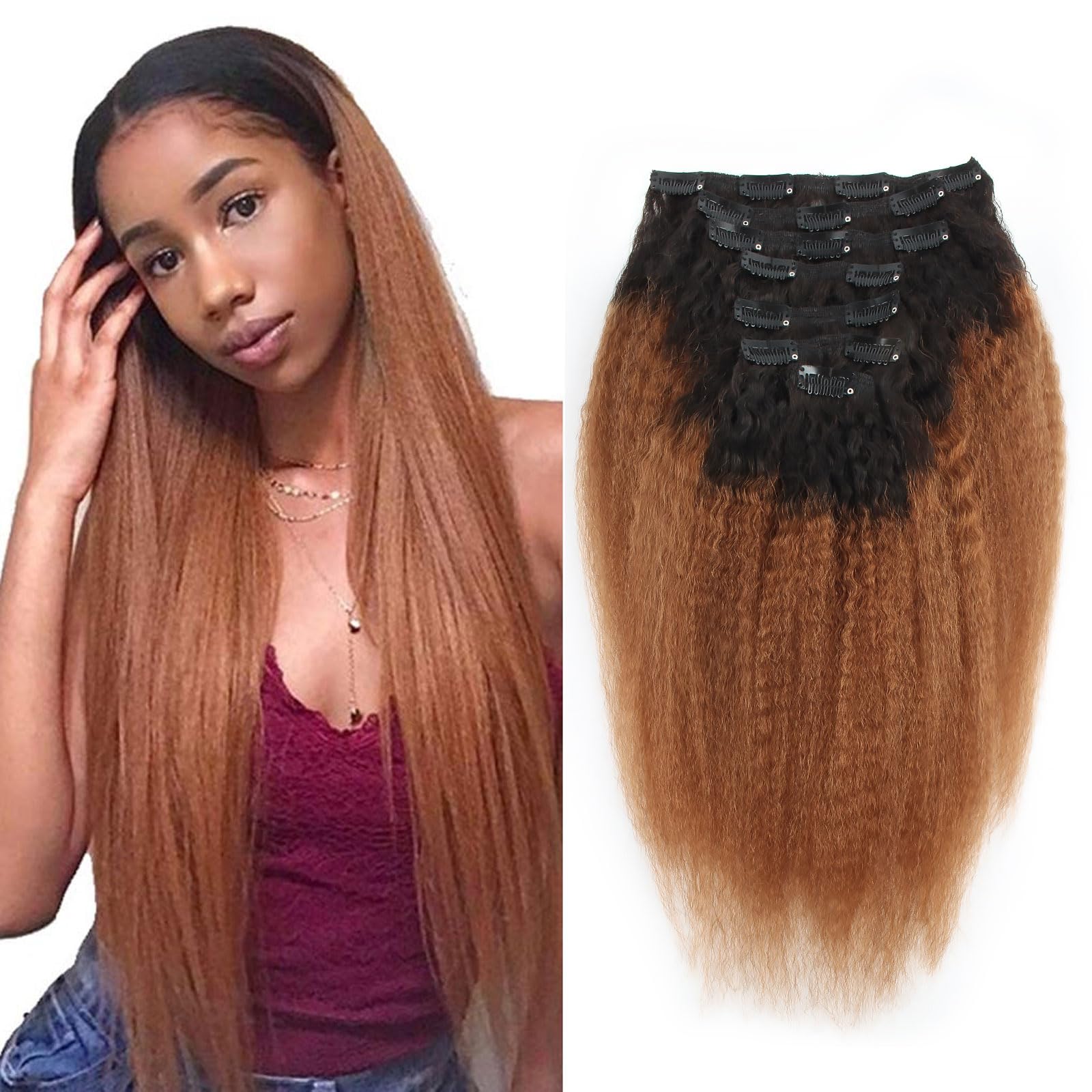About Sassina:Sassina Is Committed To Producing Real Human Hair Extensions. All Of The Sassina Hair Are Made Of The Original Human Hair Cut From The Young Women. Sassina Staff Are Constantly Pursuing To Improve The Quality Of The Product. If You Want To Find A Fast Way To Add Color Dimension,Volume And Length,Sassina Clip-Ins Hair Extensions Is Your Best Choice!Product Description:Hair Quality: 100% Remy Human Hairtexture: Kinky Straighthair Length: 12-18Inchhair Weight: 120G/Set Pieces: Double Wefts 7 Hair Pieces With 17 Clips Attachedone - 8'' (20Cm) Wide Weft - 4 Clips Per Wefttwo - 6''(15Cm) Wide Weft - 3 Clips Per Weftthree - 4''(10Cm) Wide Weft - 2 Clips Per Weftone - 2'' (5Cm) Wide Weft - 1 Clip Per Weftproduction Type: Ombre Kinky Straight Clip In Hair Extensionshow To Wear And Care:About Quantity: Usually 1 Package Of Sassina Clip In Hair Can Make A Normal Size Head, 2 Packages Can Make A Fuller Hairstyle.About Using: Sassina Hair Is Cut From Young And Healthy Women, 100% Real Human Hair Can Be Straightened And Curled Just Like Your Own Hair, If You Are Chasing An Amazing Hair Style, We Suggest You Let Your Hair Dresser To Make It For You.About Dyeing: The Hair Can Be Dyed Into Darker Color. Please Choose A Strand Hair To Have A Test Before Dyeing All The Hair. But In Usually Time We Do Not Suggest Doing So As It Will Shorten The Lifetime Of The Hair.About Washing: Use Sulfate-Free And Moisturizing Formula Shampoo. The More That A Shampoo Moisturizes, The Better It Will Be For Your Hair.Small Tips: Deal With Your Wet Hair Cautiously. By Now Means You Could Not Sleep On Your Moist Hair, As It Can Certainly Harm Your Extensions By Splitting Them.The Satisfaction Of Every Customer Is What We Are Chasing For, Thank You For Your Trust!