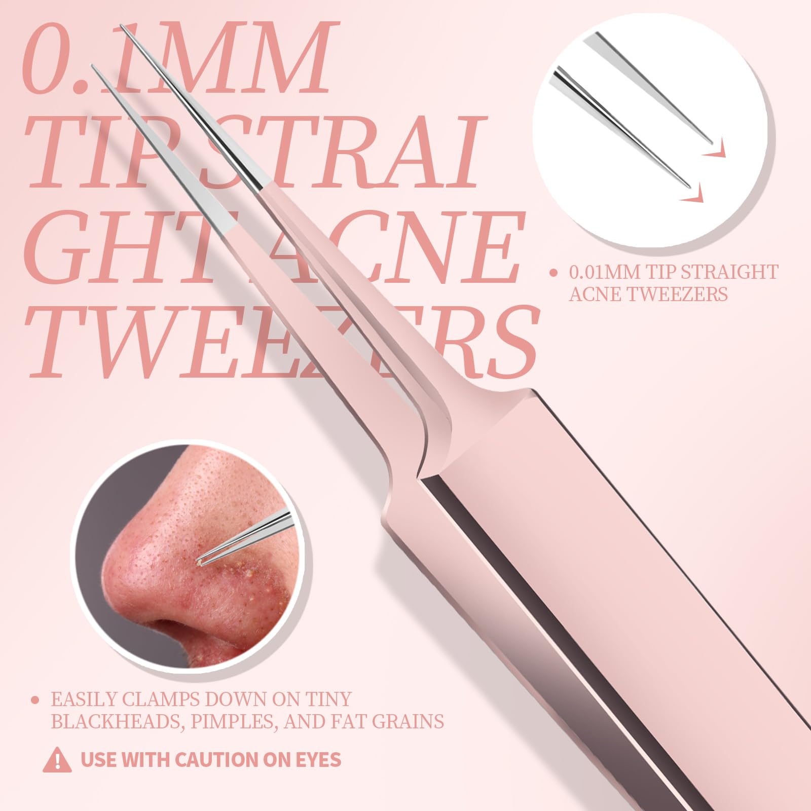 Teenitor Blackhead Remover Kit, Pimple Popper Tool Kit, 2 Blackhead Extractor, 1 Ingrown Hair Tweezers, 2 Pimple Extractor Pore