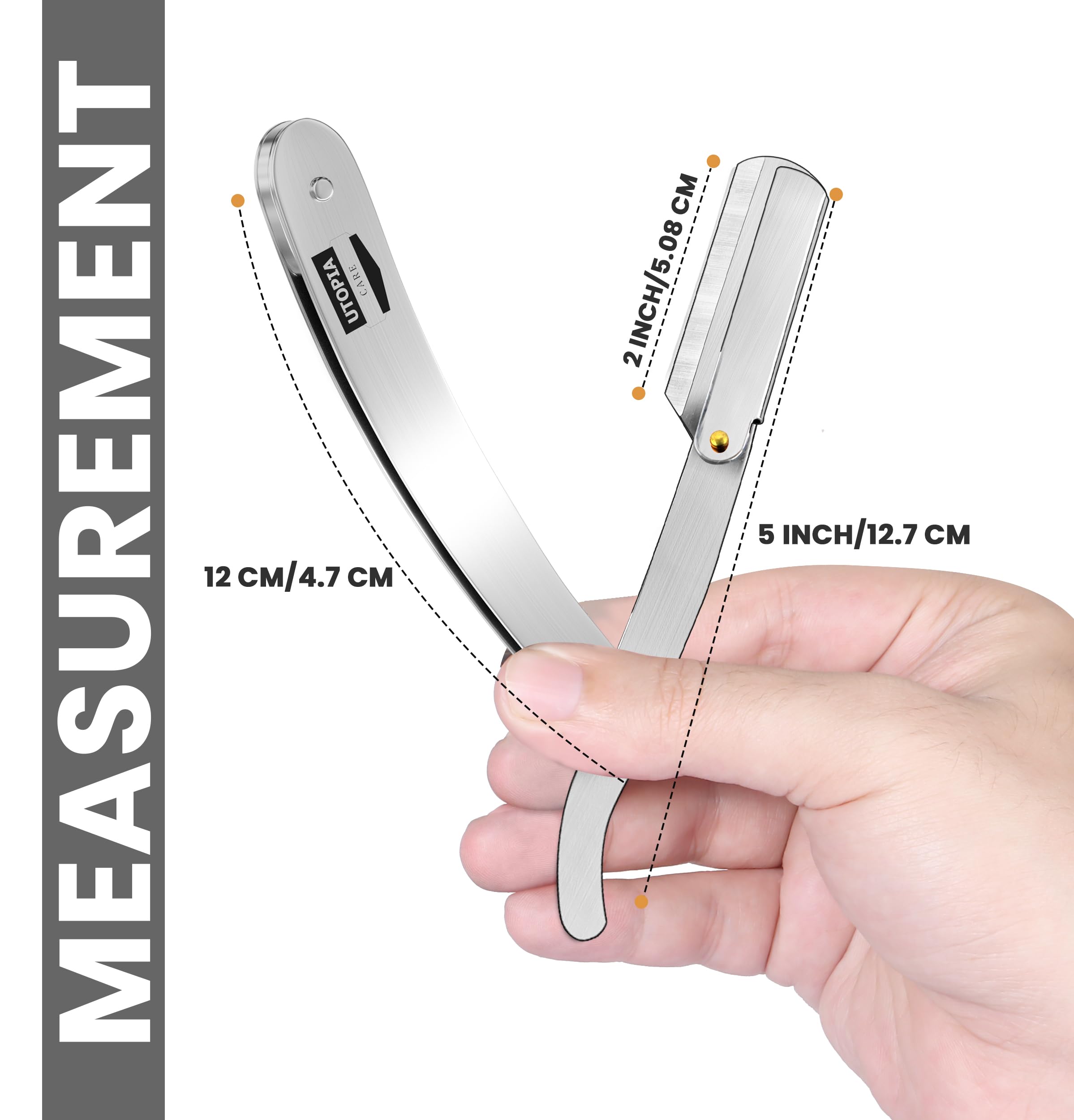 Utopia Care Professional Barber Straight Edge Razor Safety With 100-Pack Derby Blades - 100 Percent Stainless Steel (Silver)